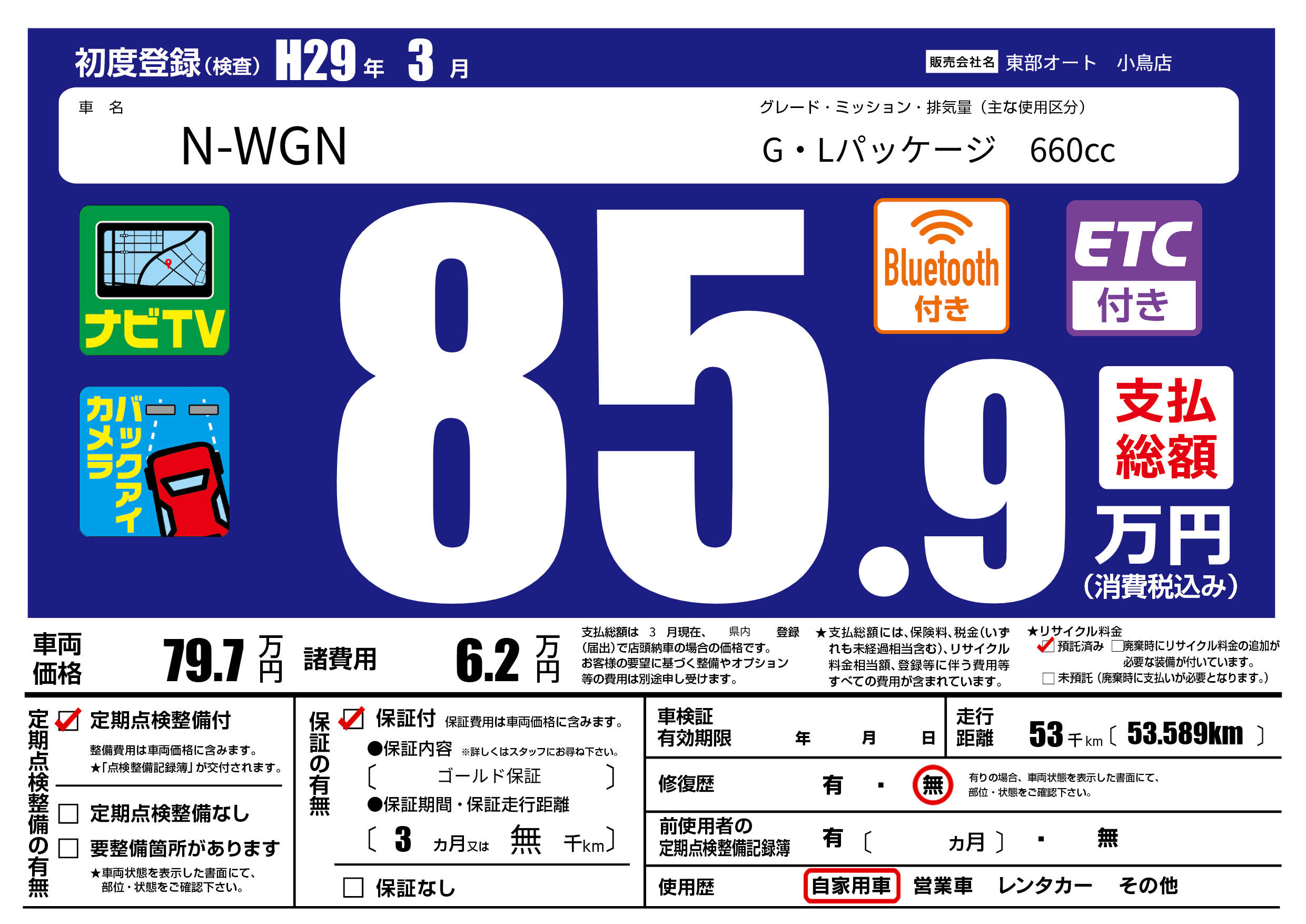 | 車名 | N-WGN | グレード ミッション 排気量 |