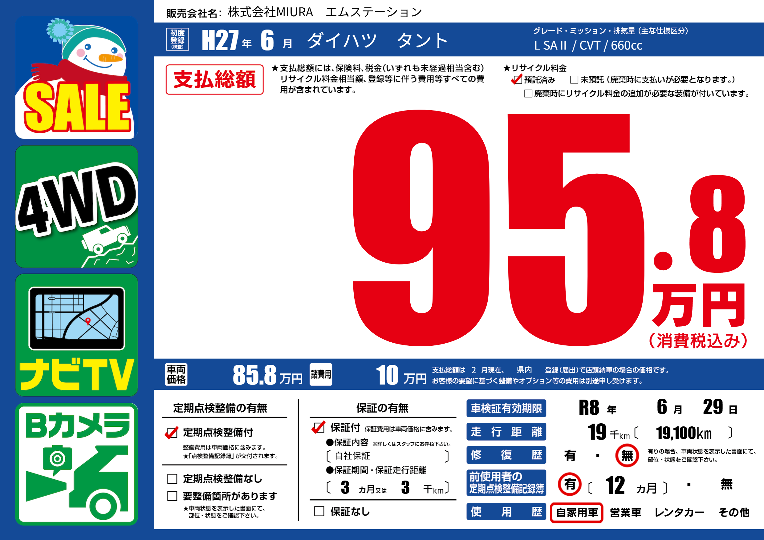 車検制限 R8年 6月 29日