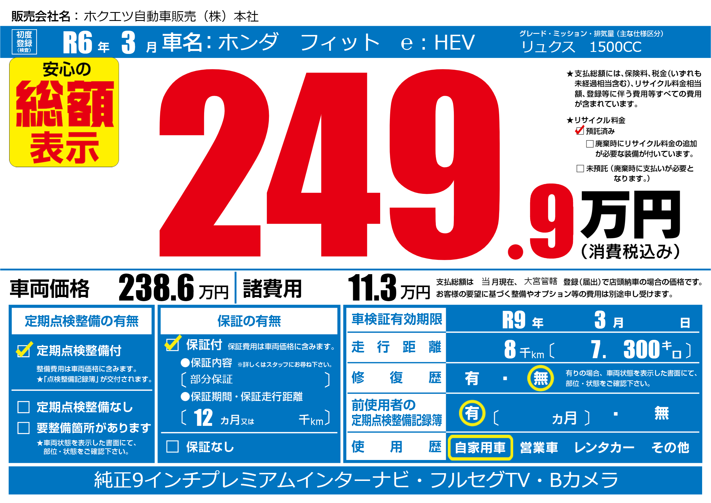 | 車検制限 | R9年 3月 - 日 | ||