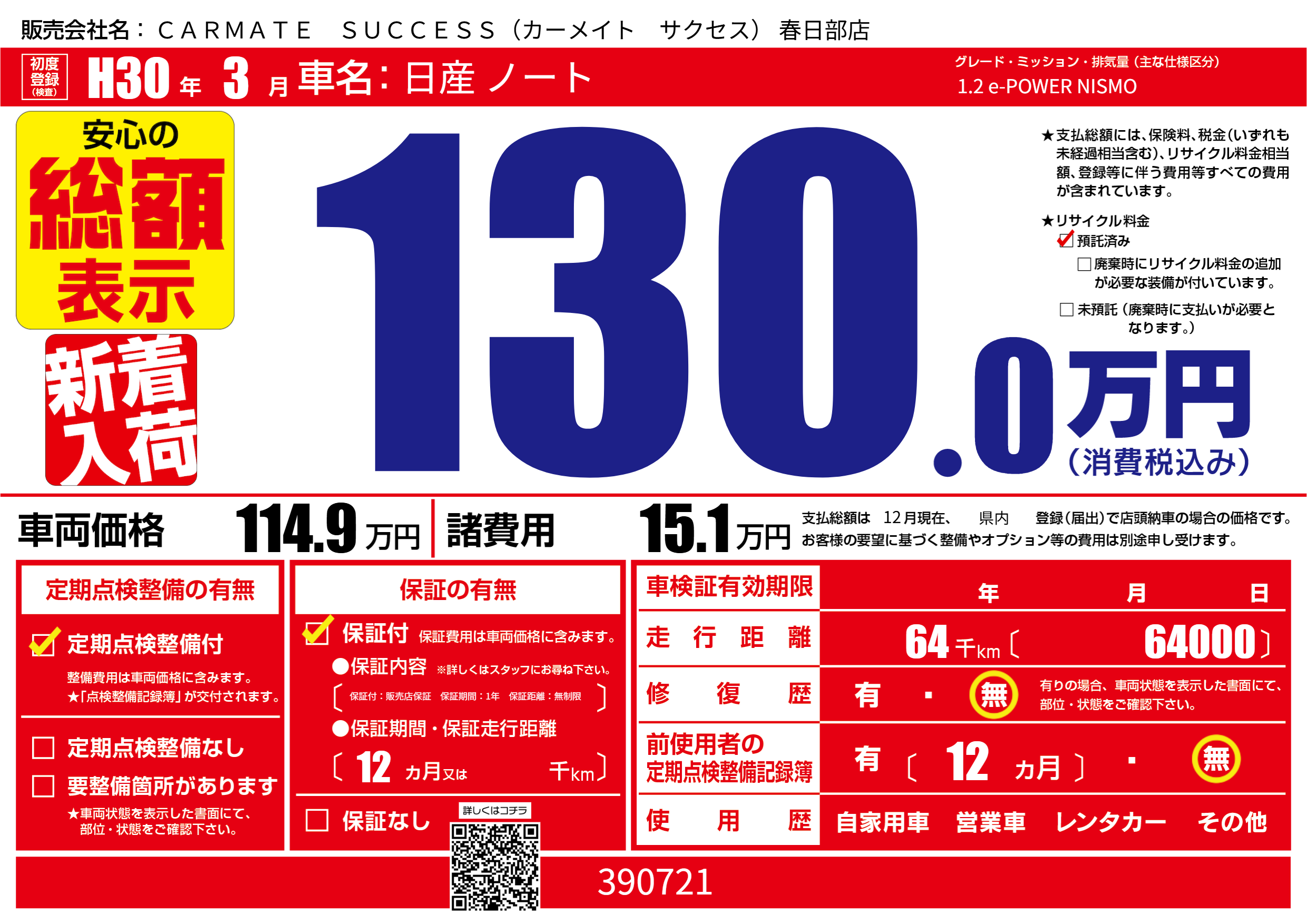 | 初年度登録 | H30年3月 | ||