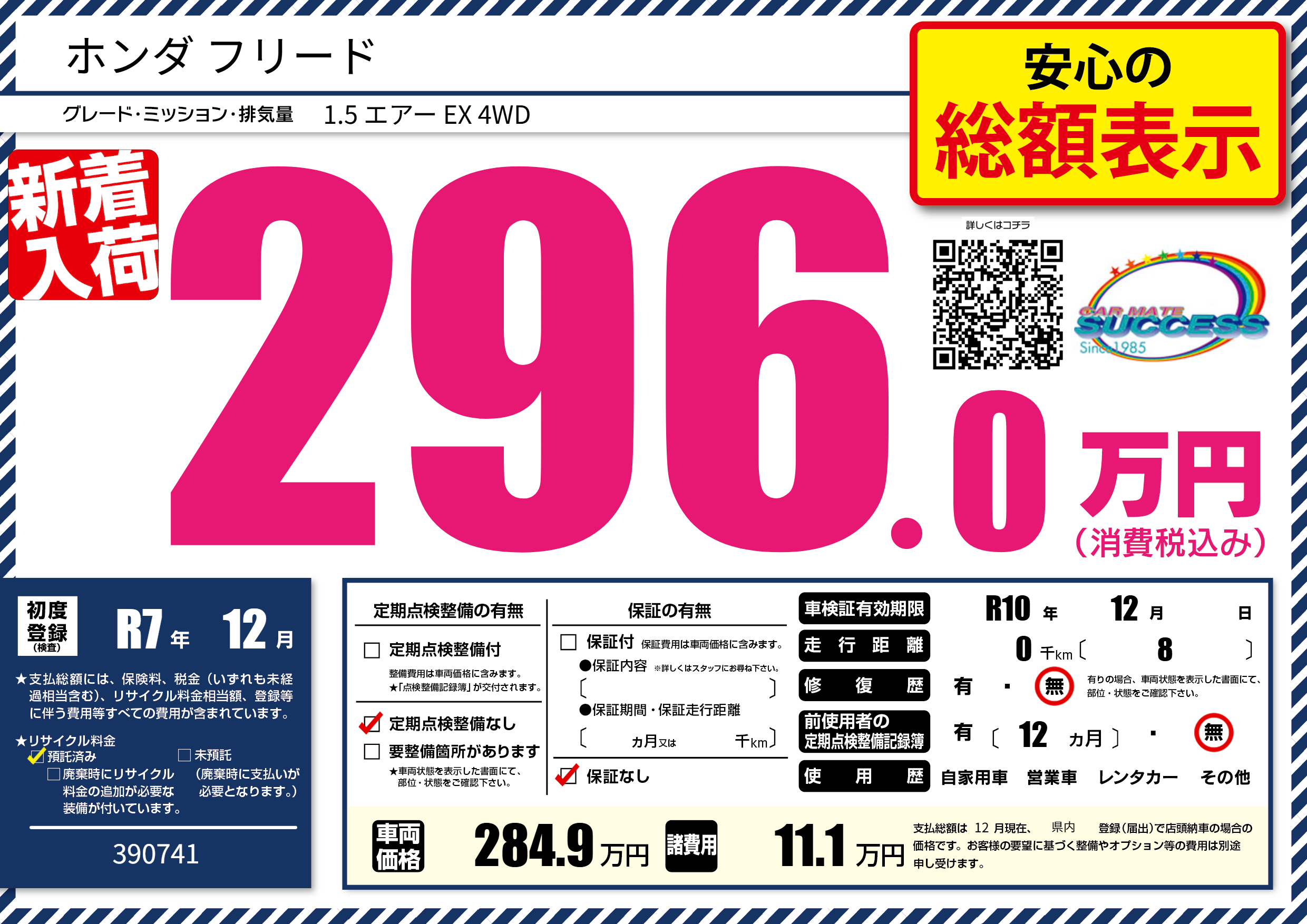 | 車名 | ホンダ フリード | グレード ミッション 排気量 |