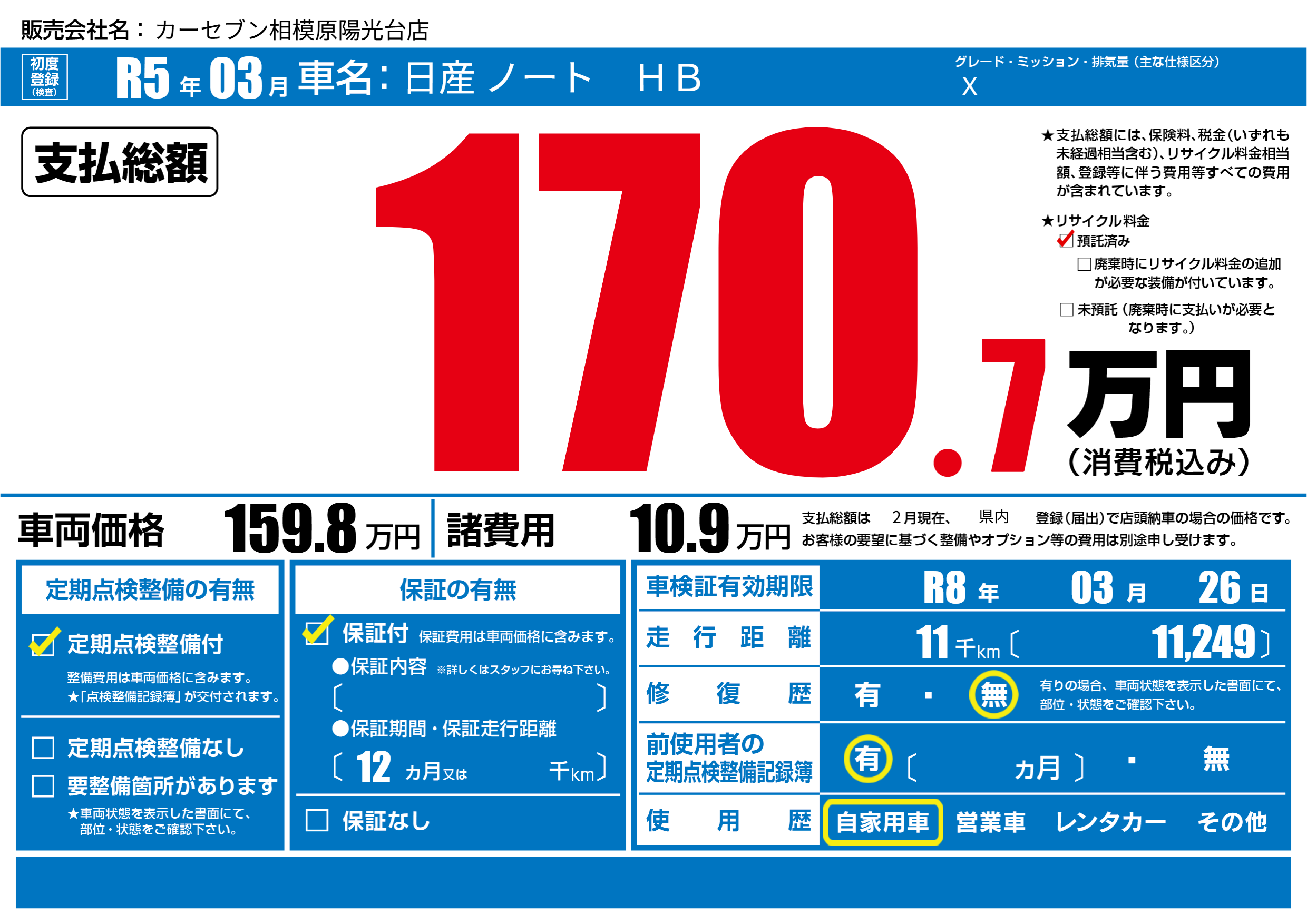 なし | 車検制限 | R8年03月26月 |
