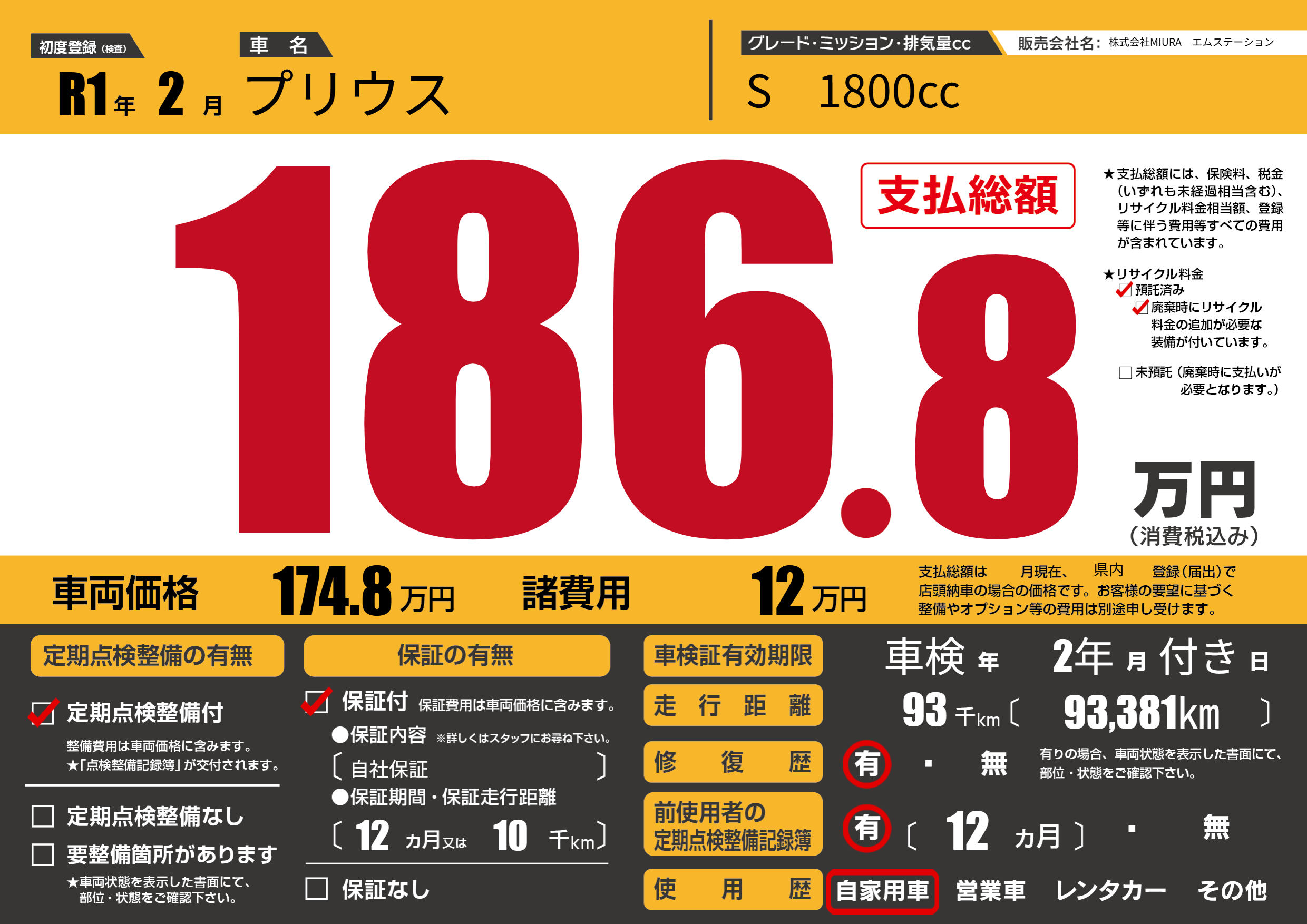 | 車名 | プリウス | グレード ミッション 排気量 |
