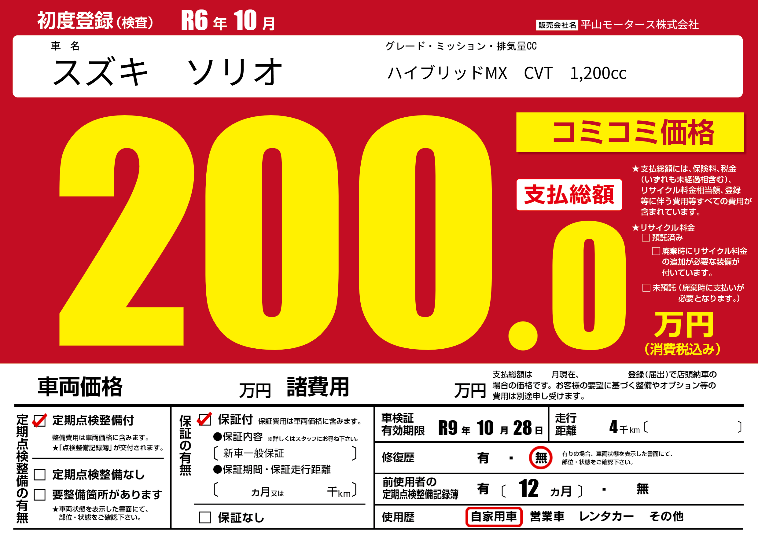 | 車検制限 | R9年 10月 28日 | ||