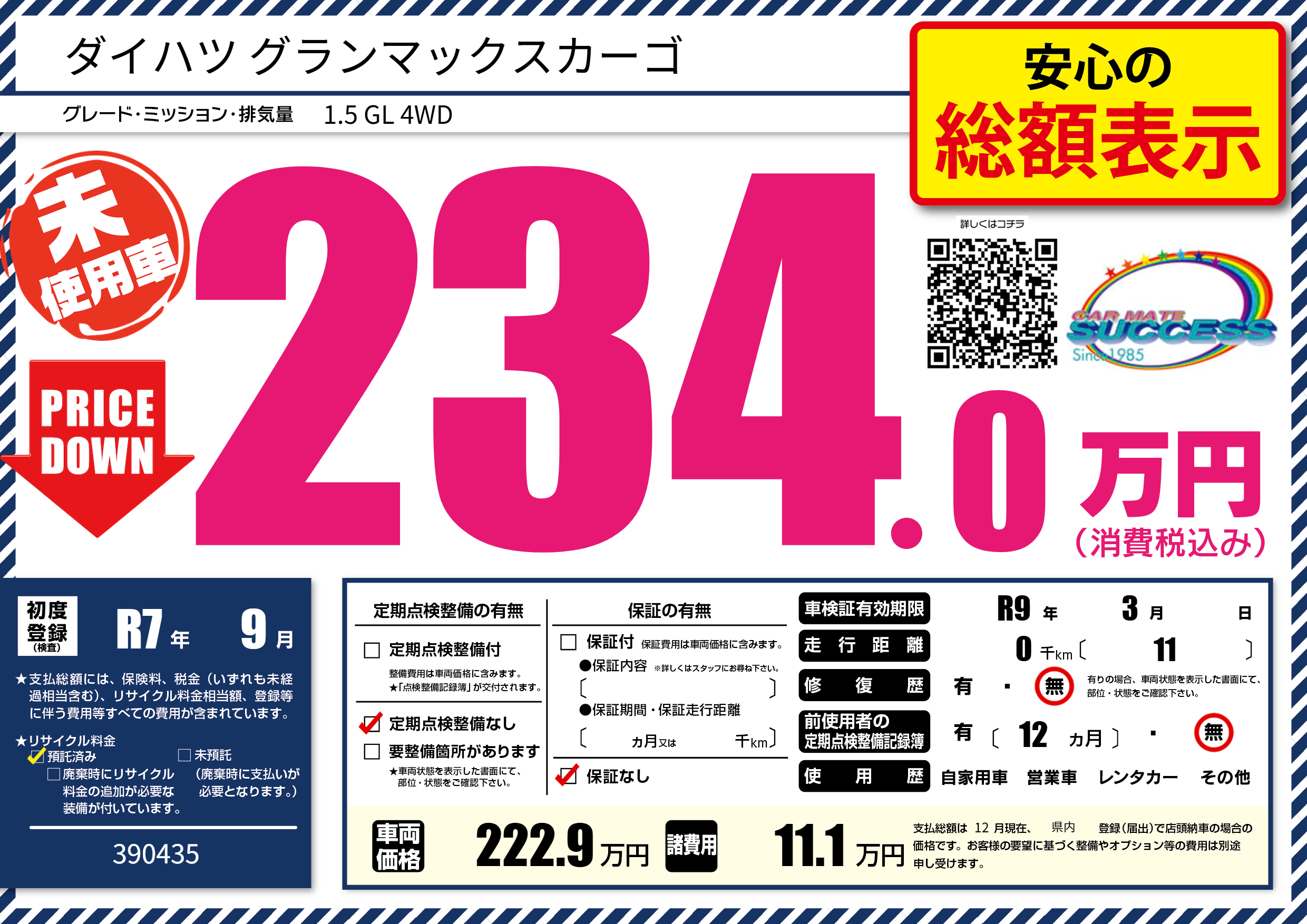 | 車検制限 | R9年 3月 - 日 | ||