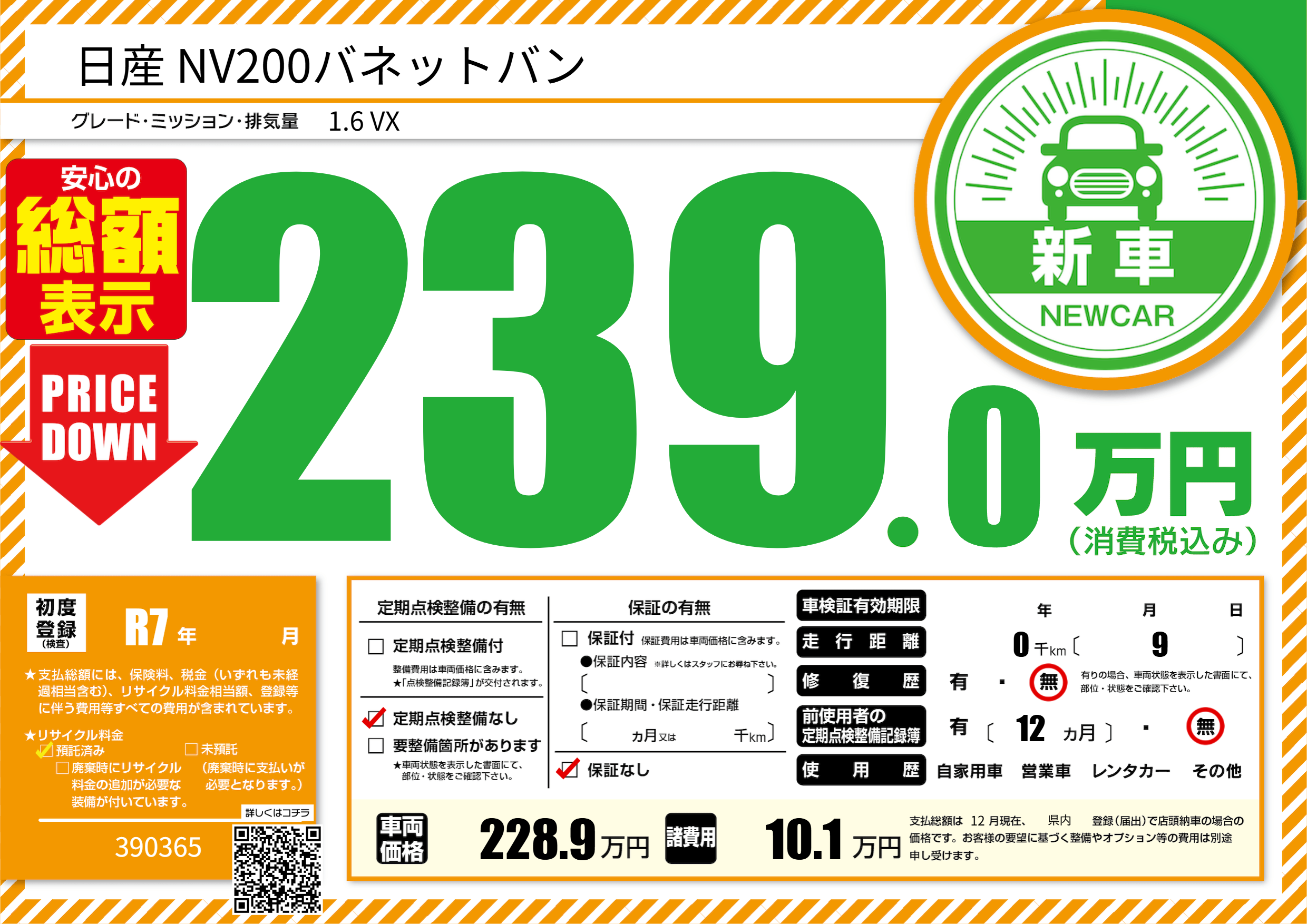 | 定期点検整備 | 定期点検整備なし | ||