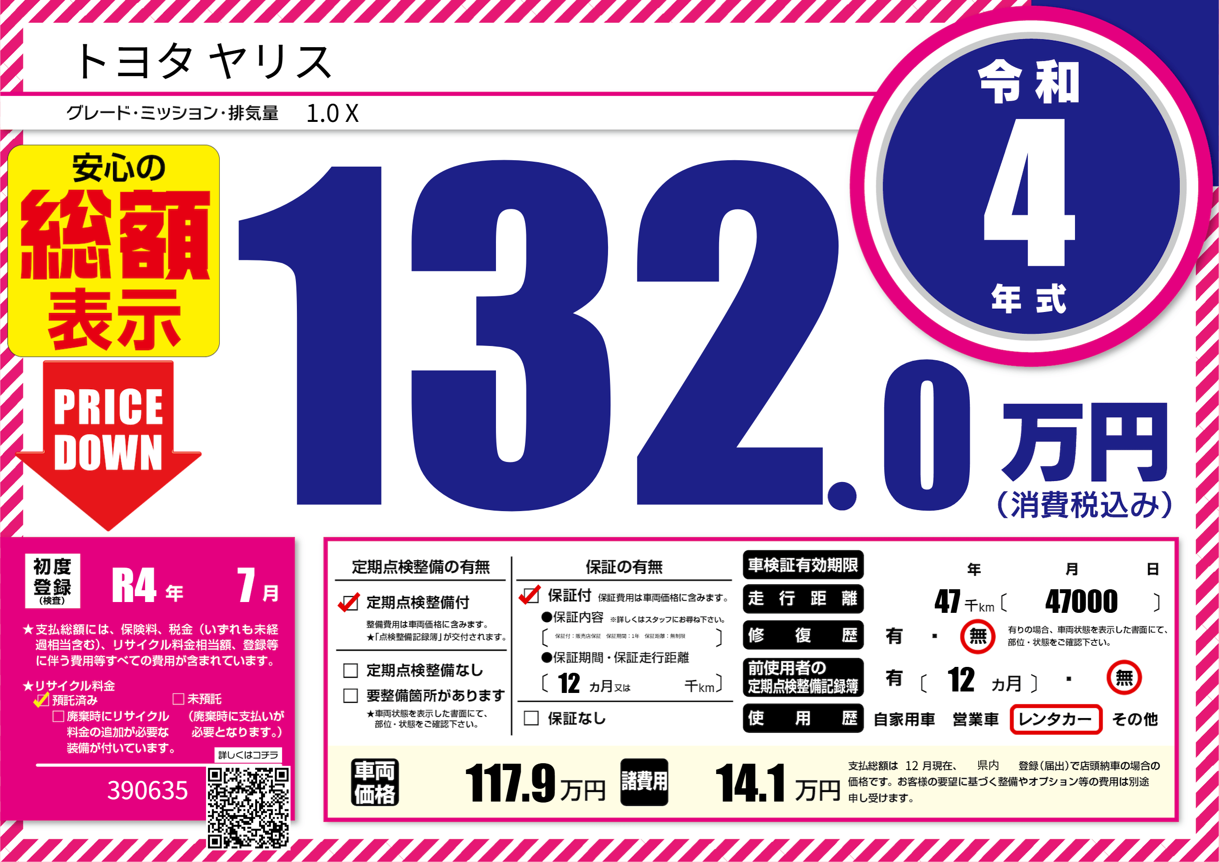 | 走行キロ | 4.7万km | 初年度登録 | R4年7月 |