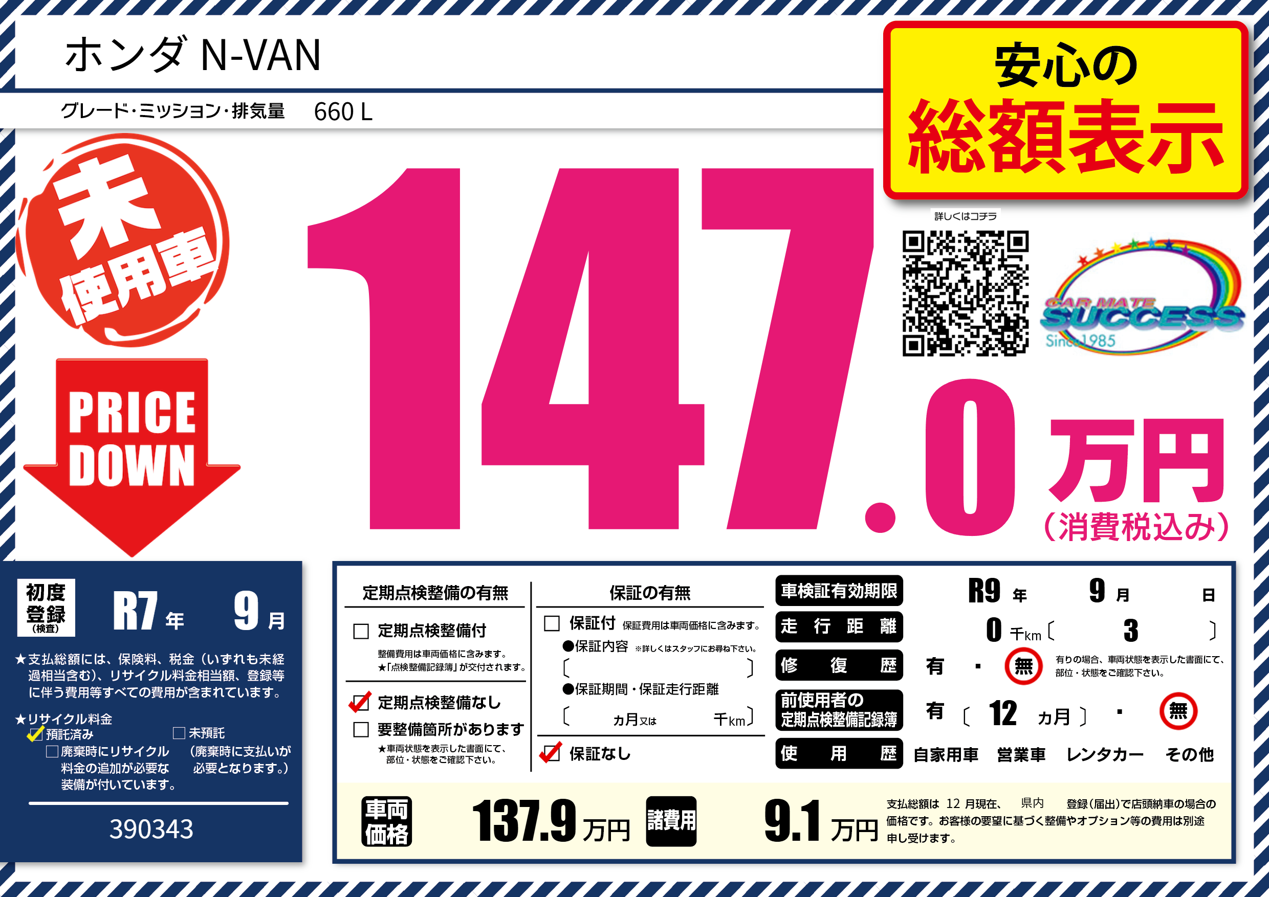 なし | 車検制限 | R9年9月---月 |