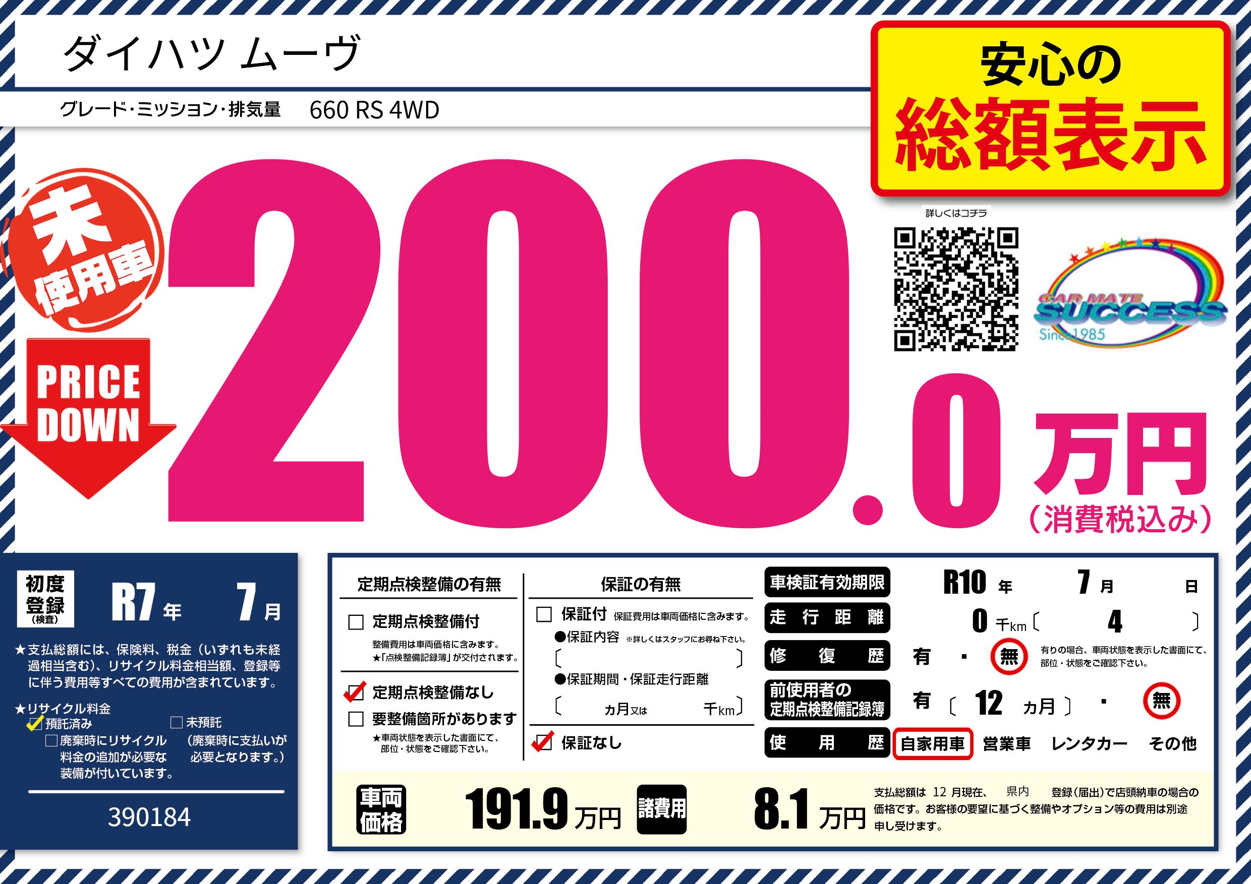 なし | 車検制限 | R10年7月---月 |