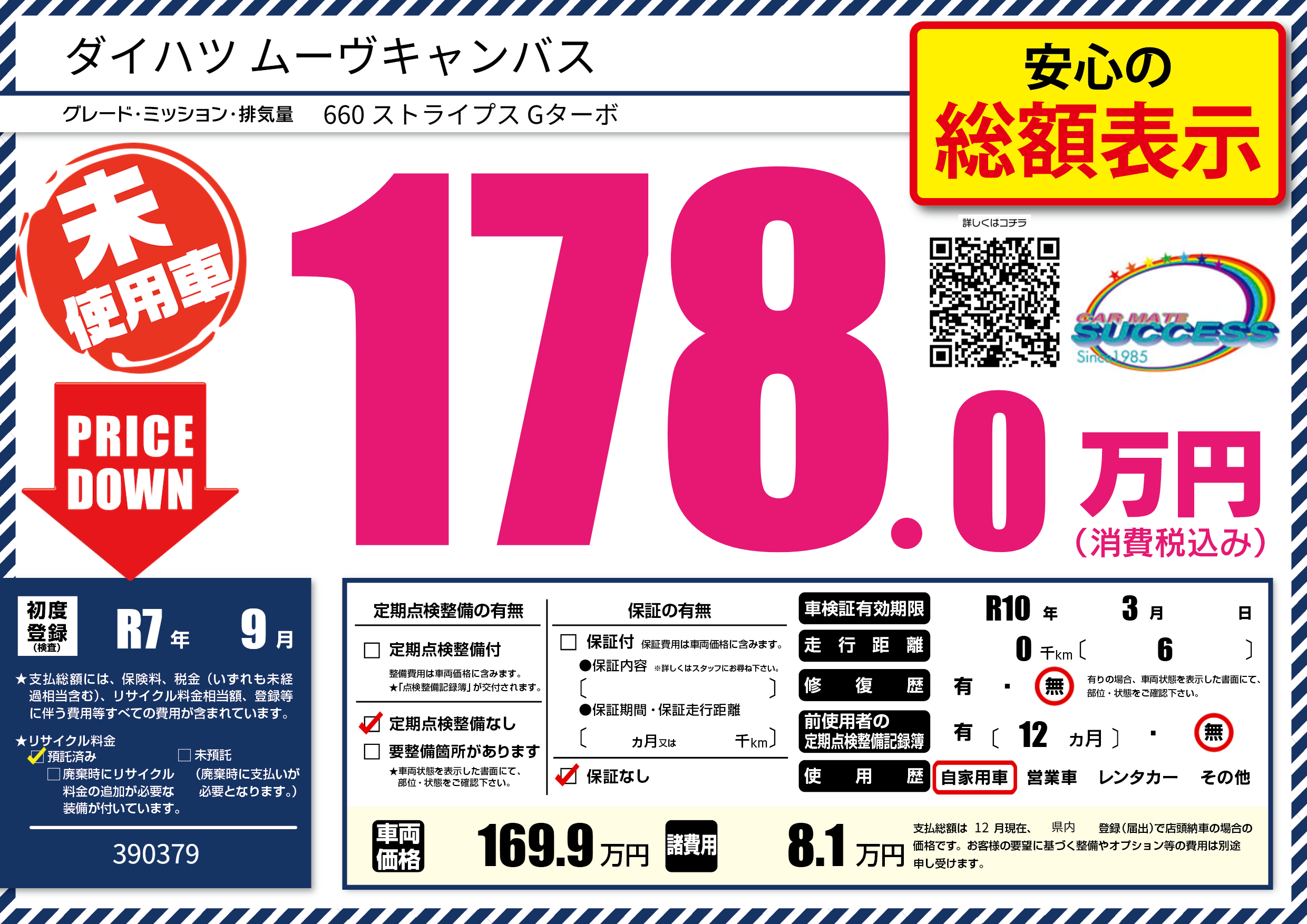 | 走行キロ | - | 初年度登録 | R7年9月 |