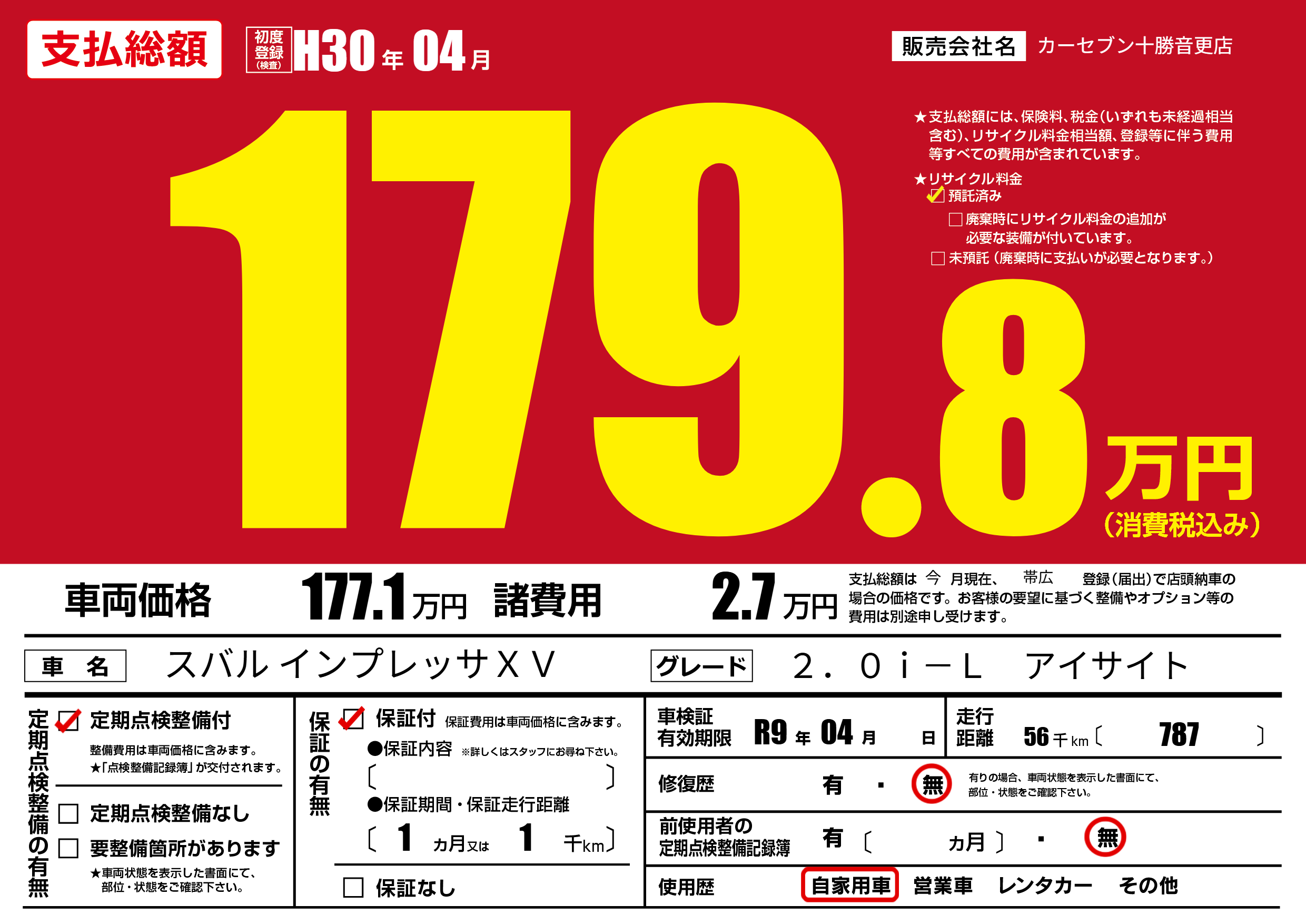 なし | 車検制限 | R9年04月---月 |
