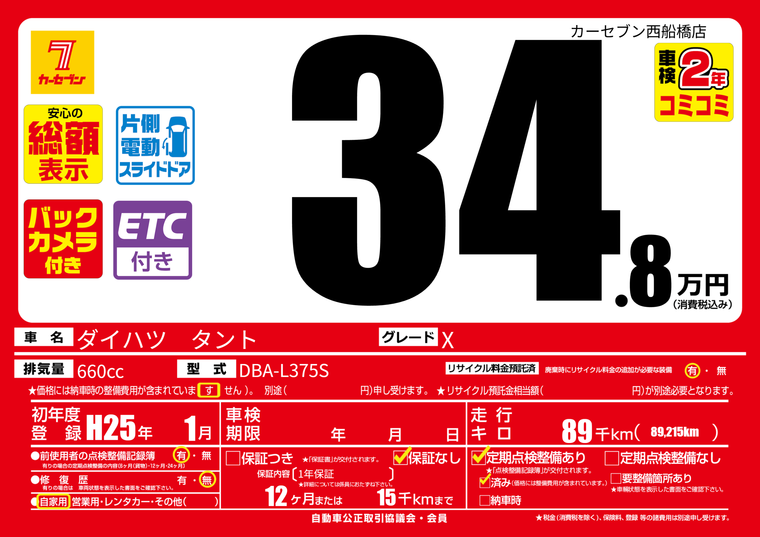 | 定期点検整備 | 定期点検整備あり 定期点検整備済み | ||