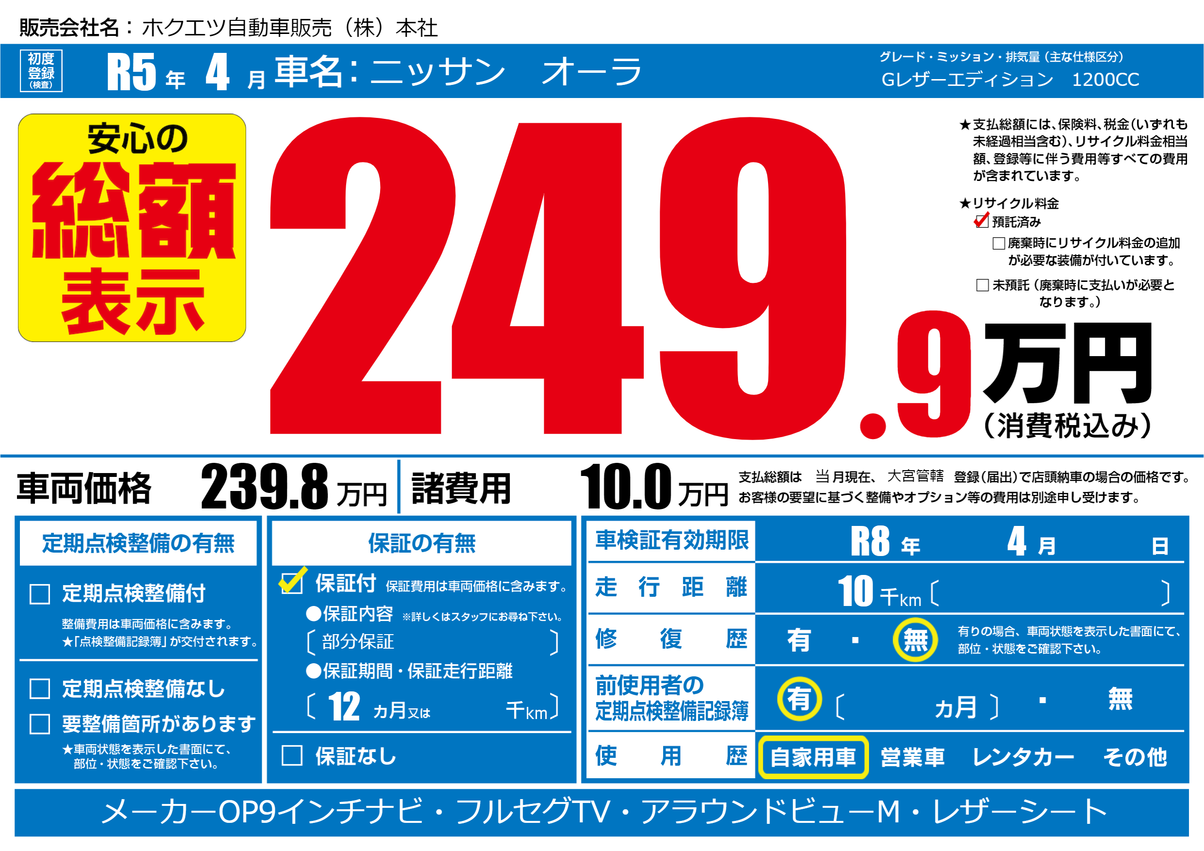 なし | 車検制限 | R8年4月---月 |