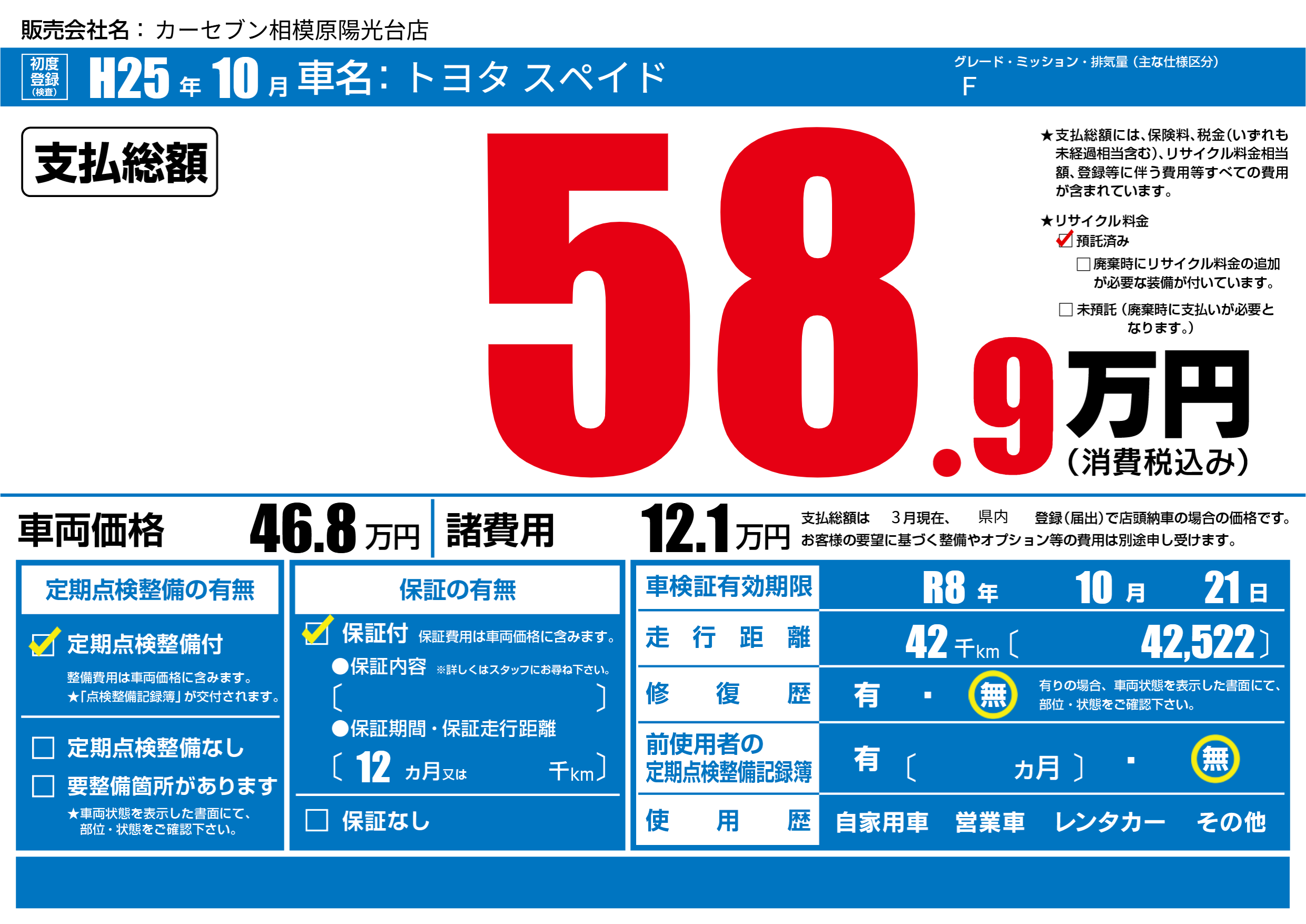 なし | 車検制限 | R8年10月21月 |