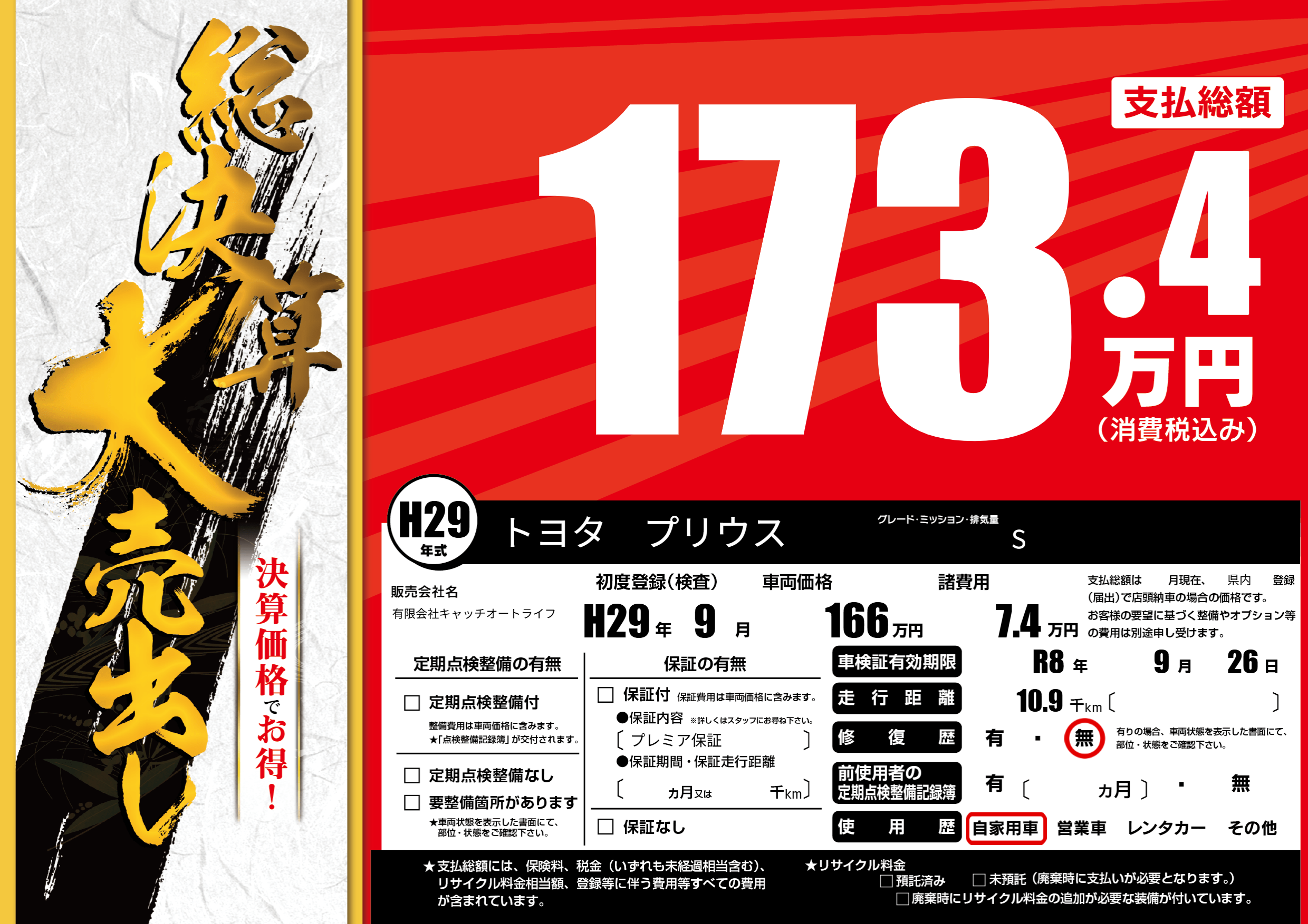 | 車名 | トヨタ プリウス | グレード ミッション 排気量 |