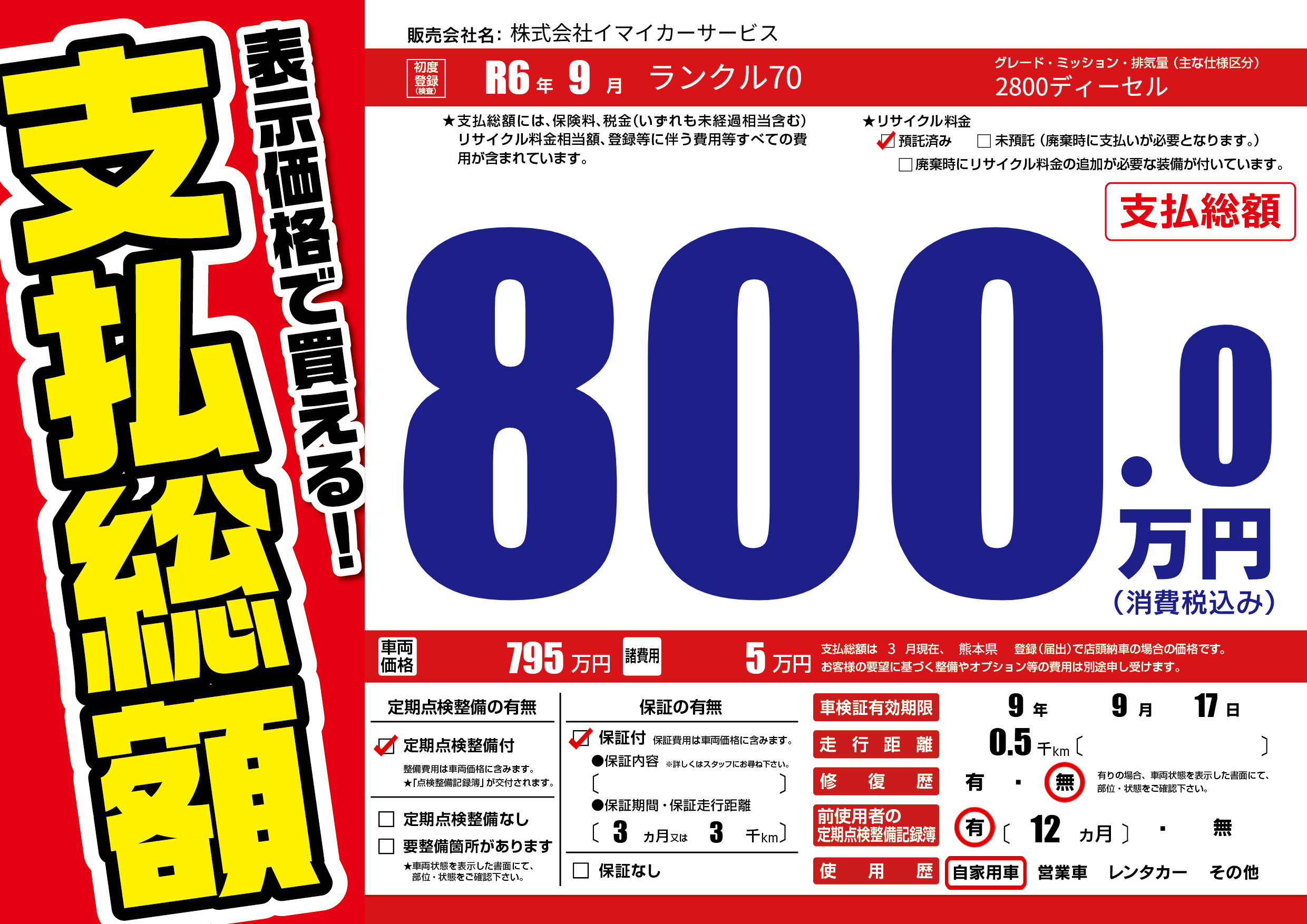 | 車検制限 | 9年 9月 17日 | ||