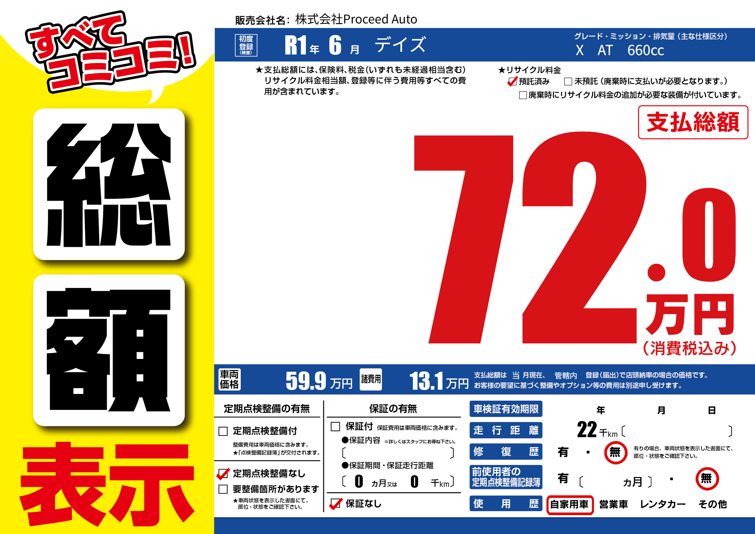 | 定期点検整備 | 定期点検整備なし | ||