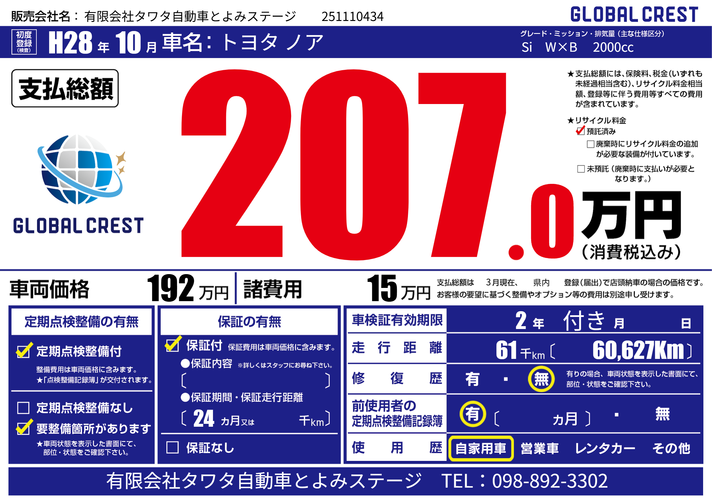 | 車検制限 | 2年 付き月 - 日 | ||