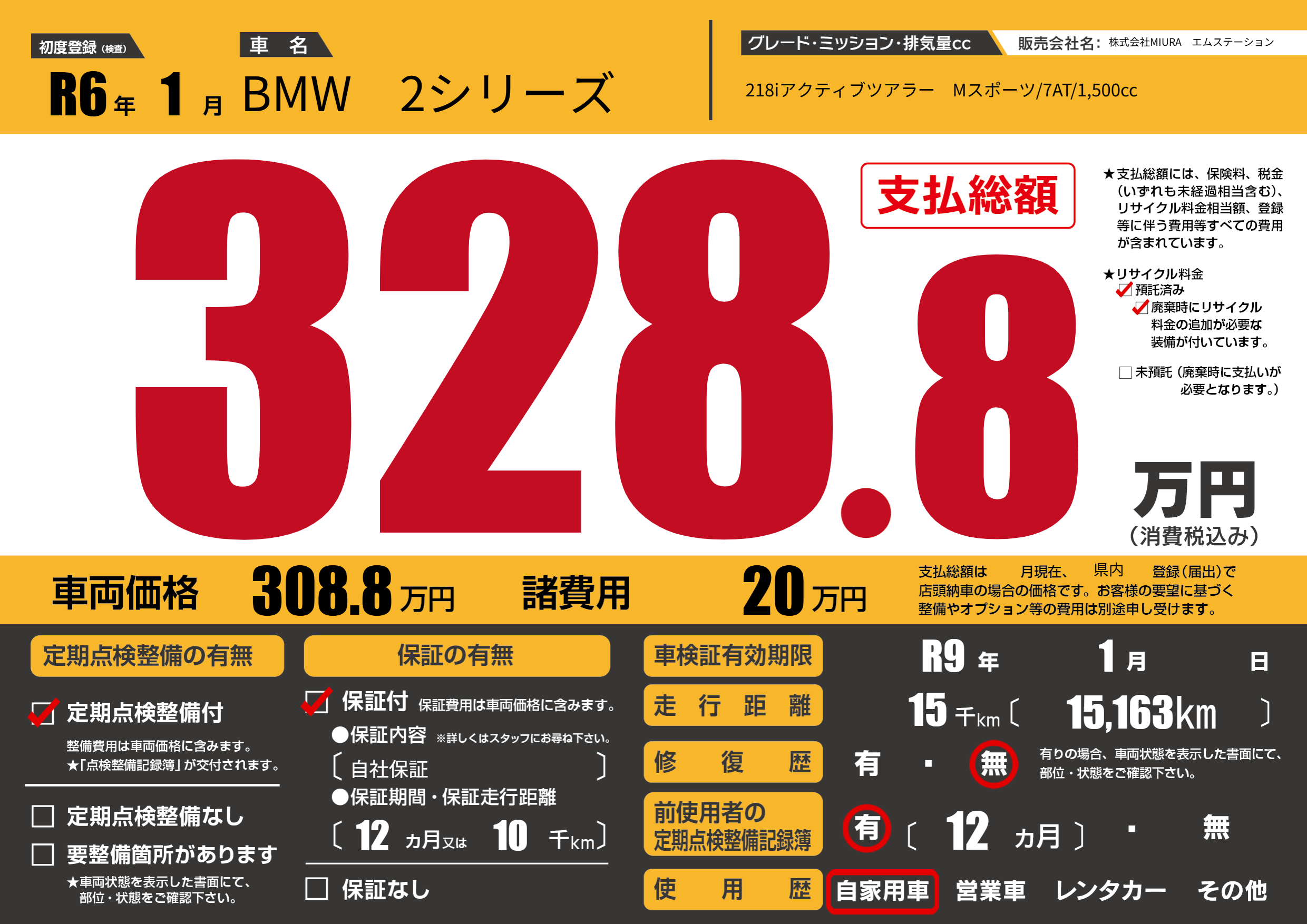 | 車検制限 | R9年 1月 - 日 | ||