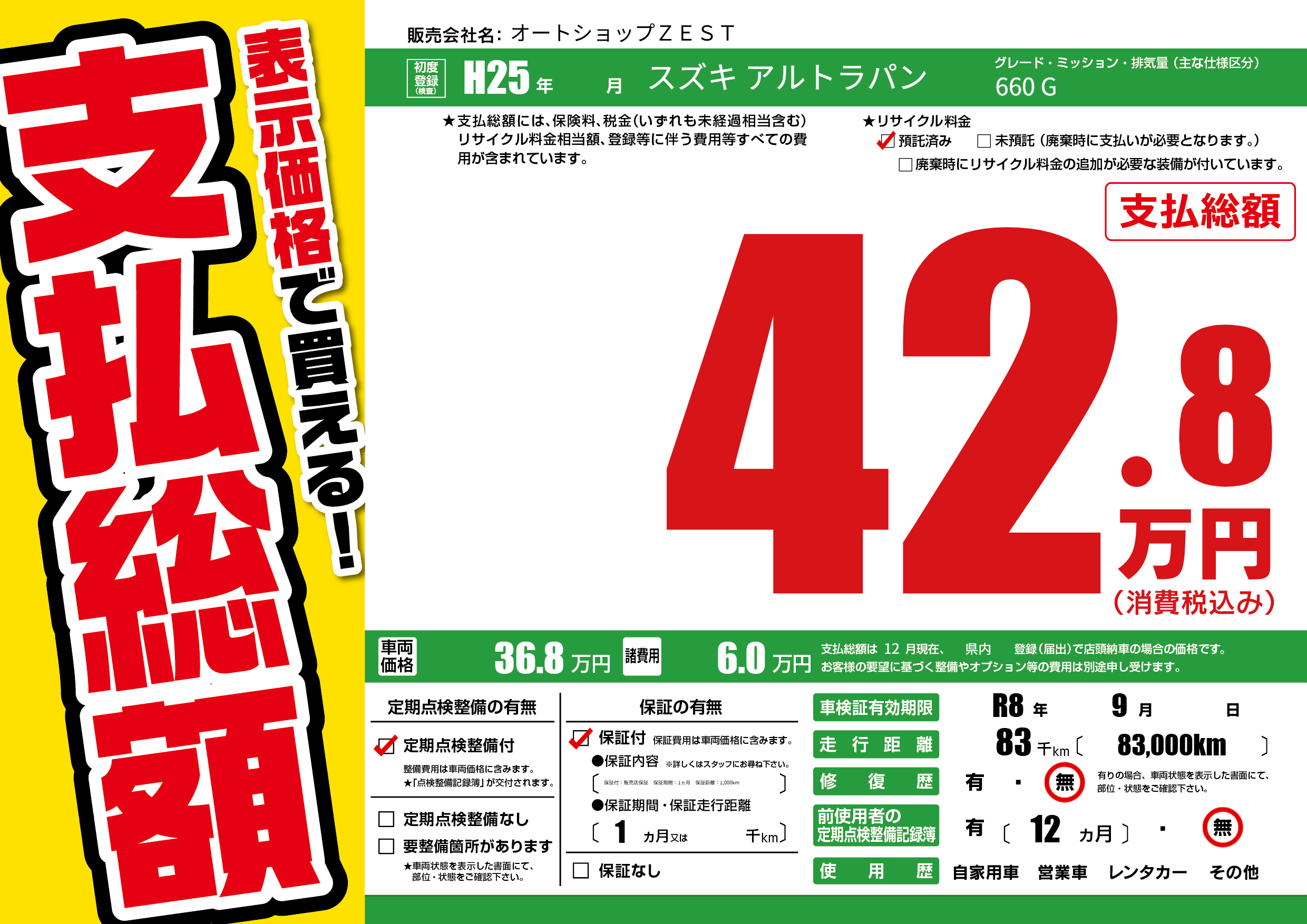なし | 車検制限 | R8年9月---月 |