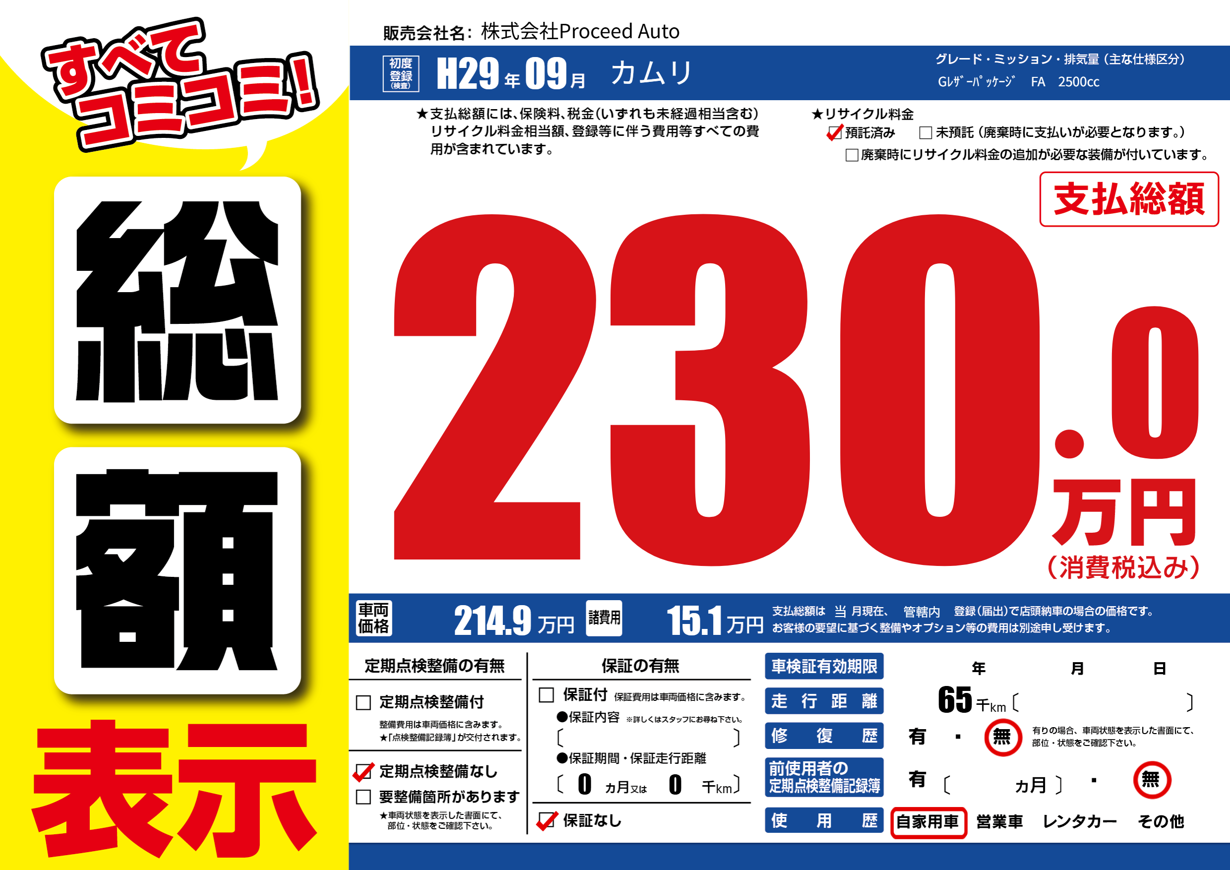 | 走行キロ | 6.5万km | ||