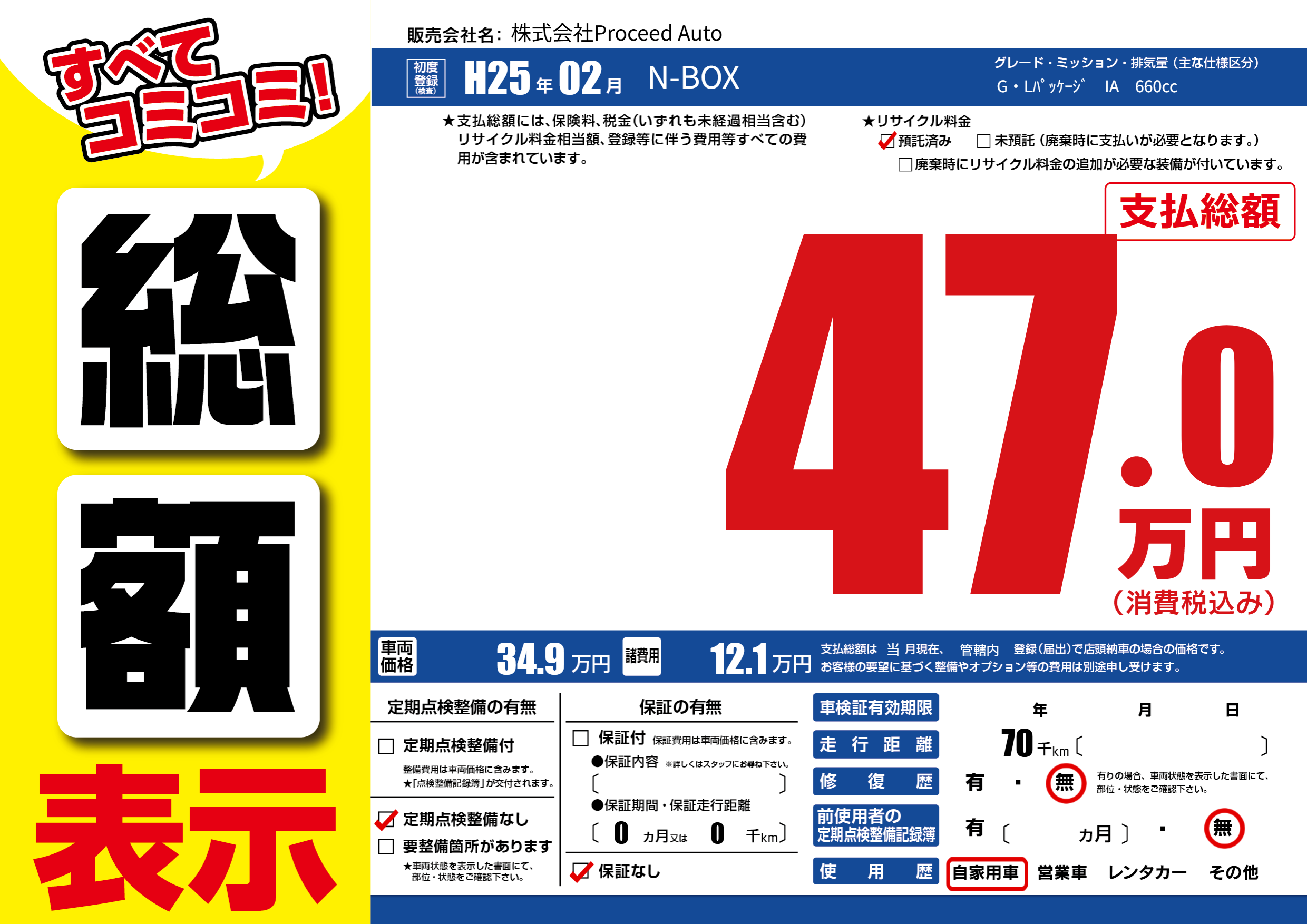 | 定期点検整備 | 定期点検整備なし | ||