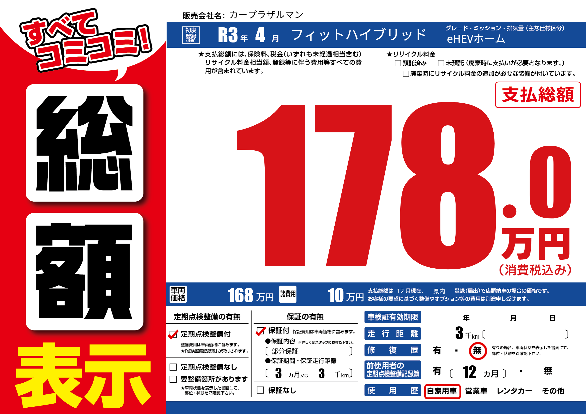 保証付き 保証内容(部分保証) 3ヶ月または(3)千kmまで |