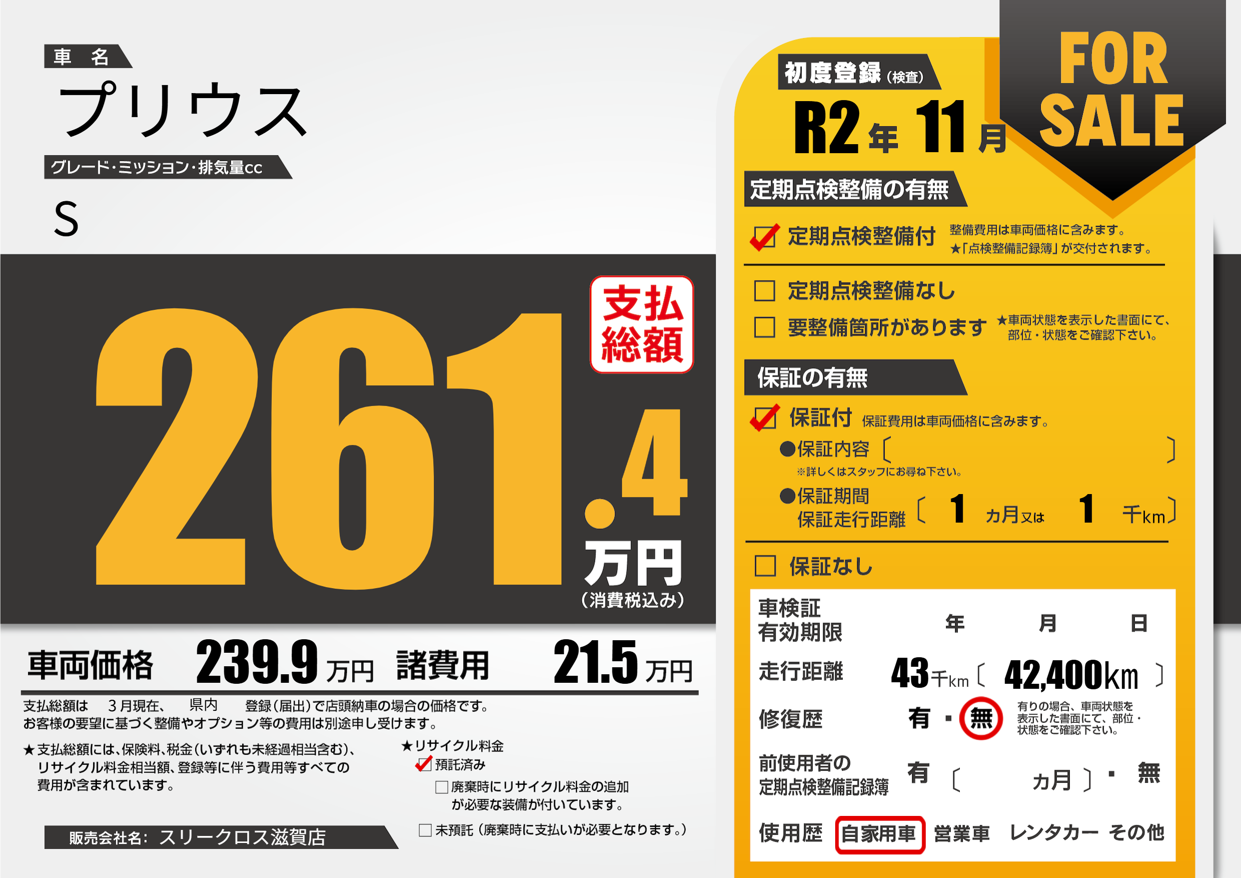 | 車名 | プリウス | グレード ミッション 排気量 |
