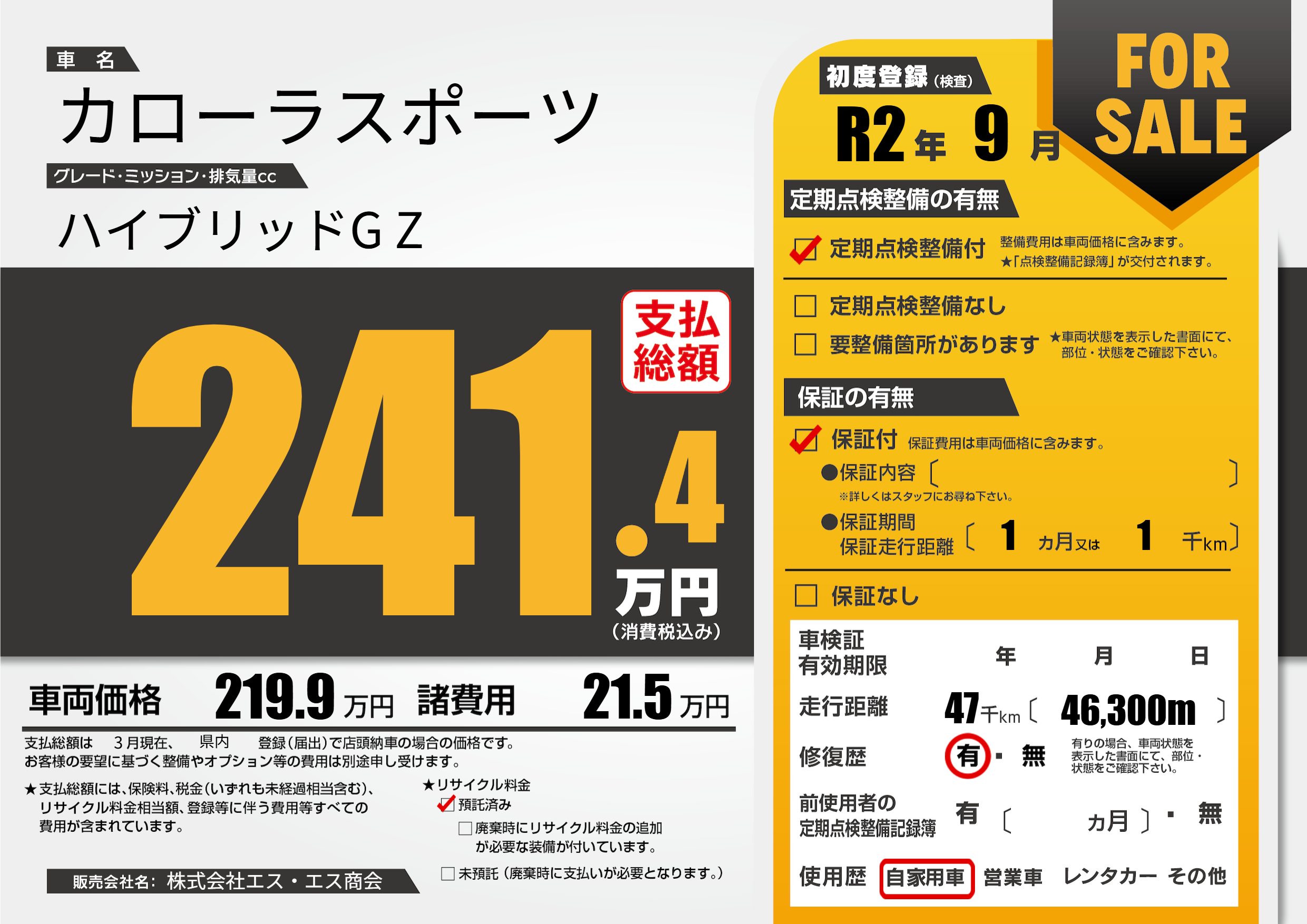 | 走行キロ | 4.7万km | 初年度登録 | R2年9月 |
