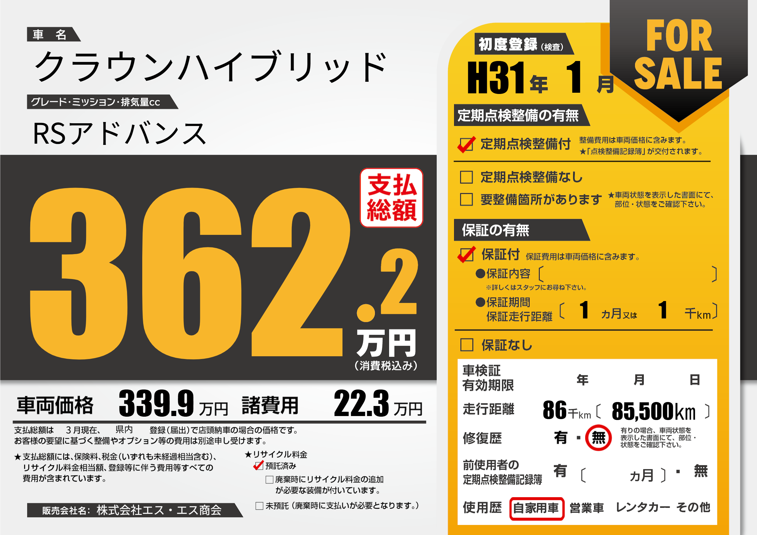| 走行キロ | 8.6万km | ||