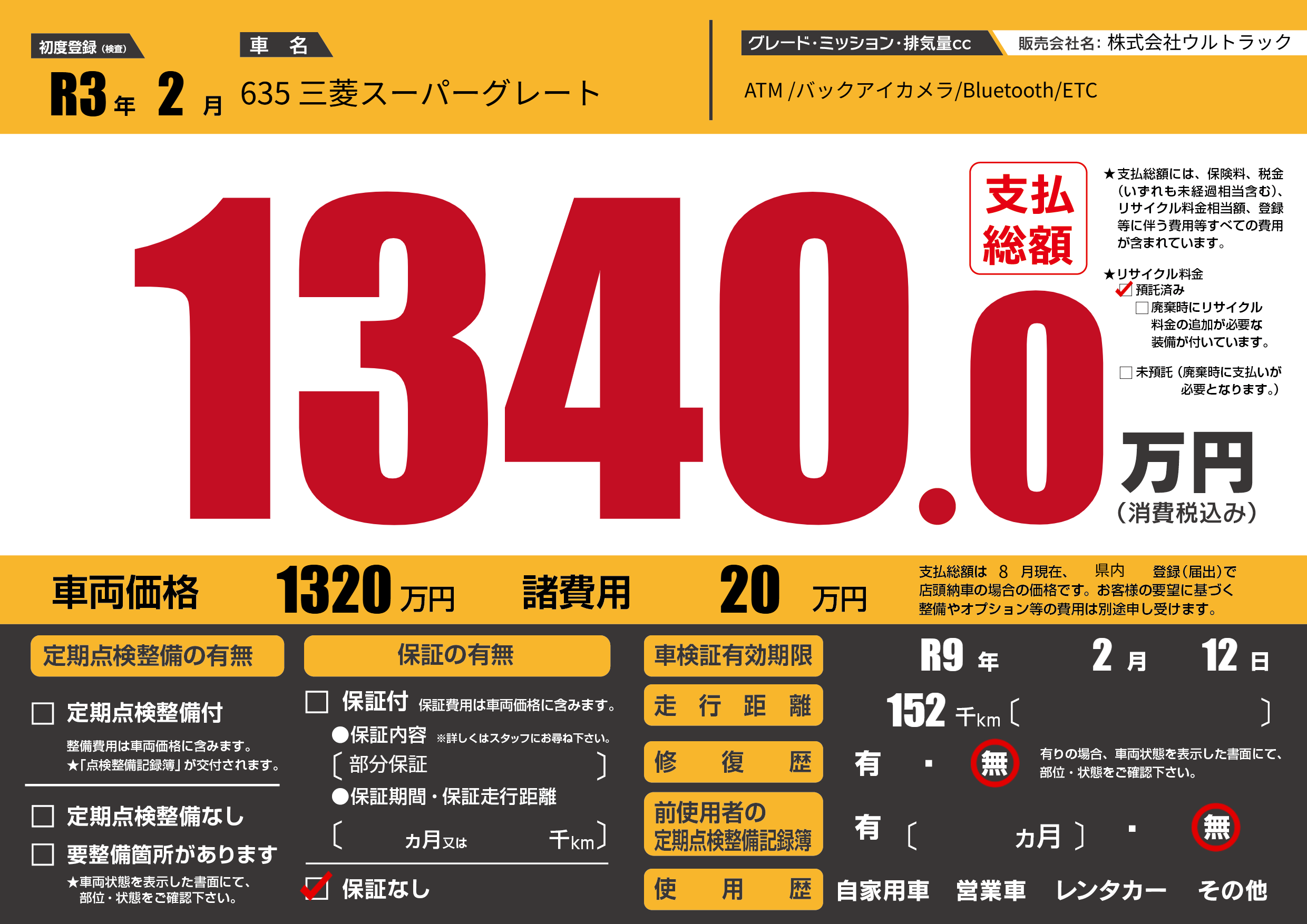| 車名 | 635 三菱スーパーグレート | グレード ミッション 排気量 |