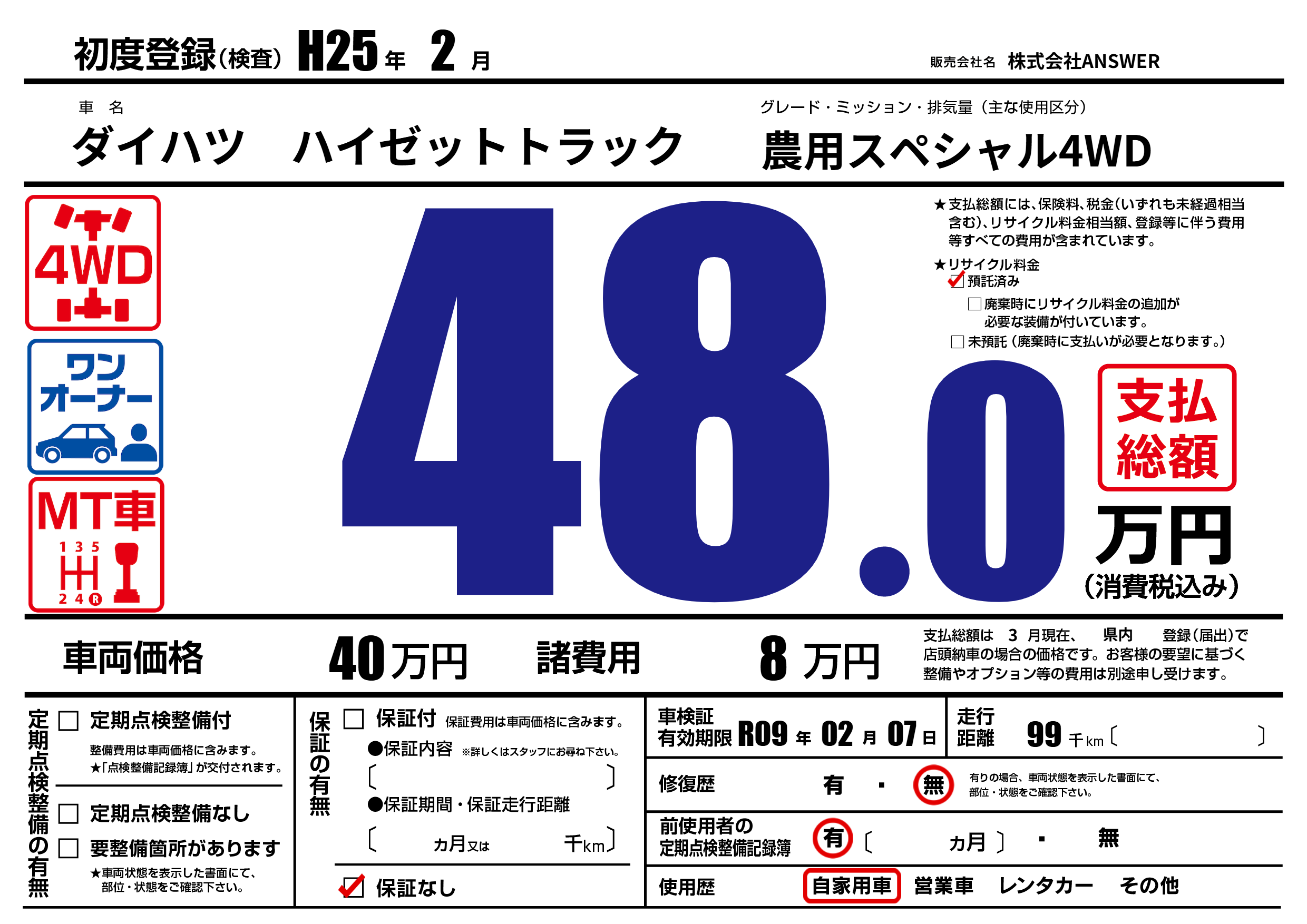 なし | 車検制限 | R09年02月07月 |