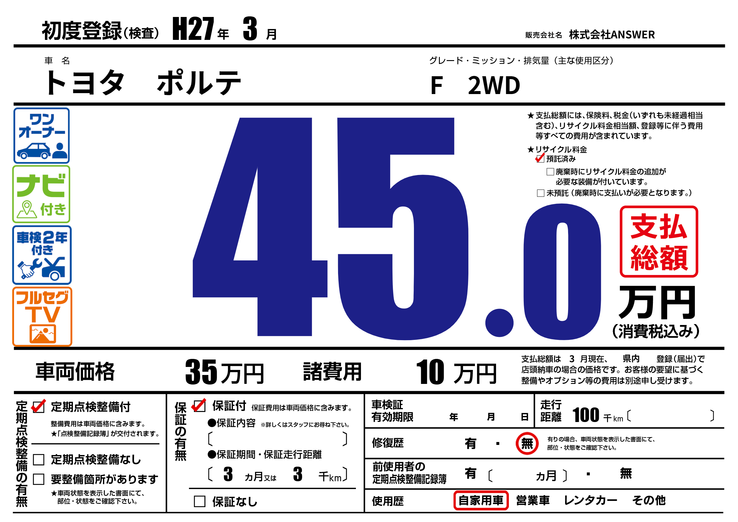 | 初年度登録 | H27年3月 | ||