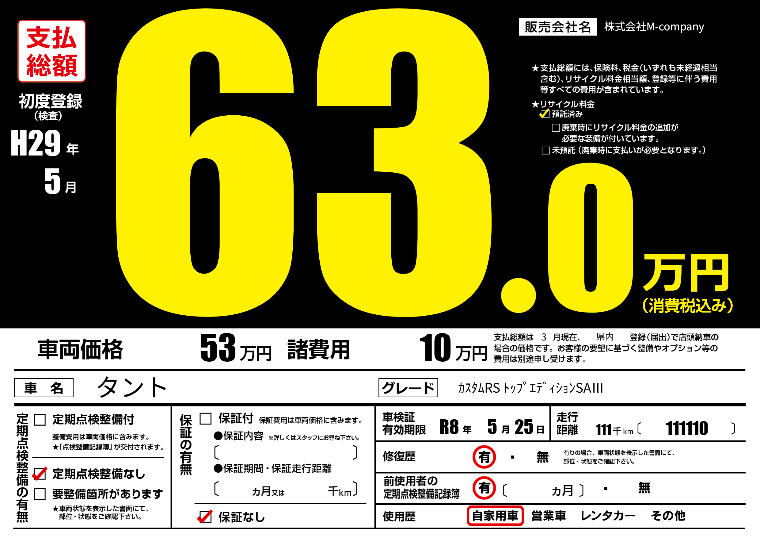 なし | 車検制限 | R8年5月25月 |