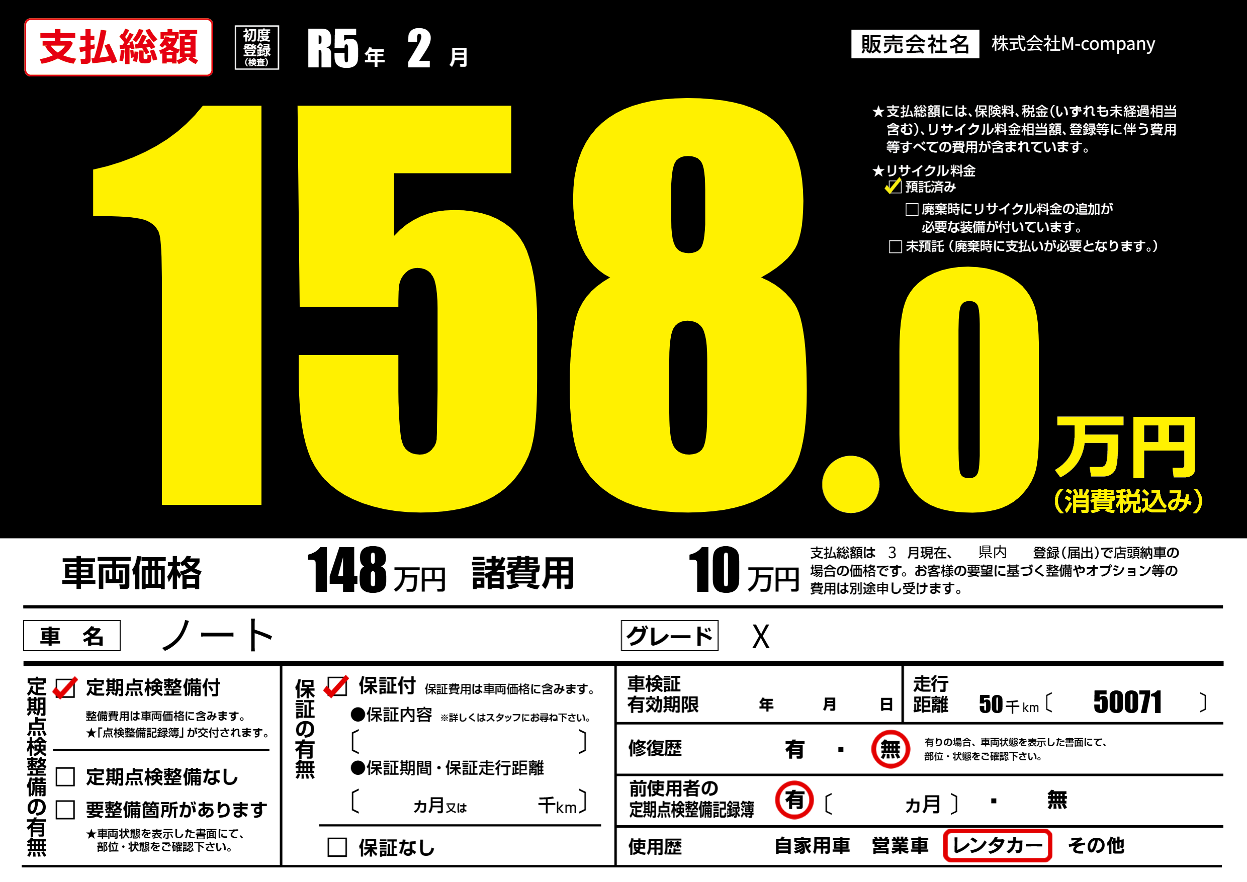 | 走行キロ | 5万km | 初年度登録 | R5年2月 |
