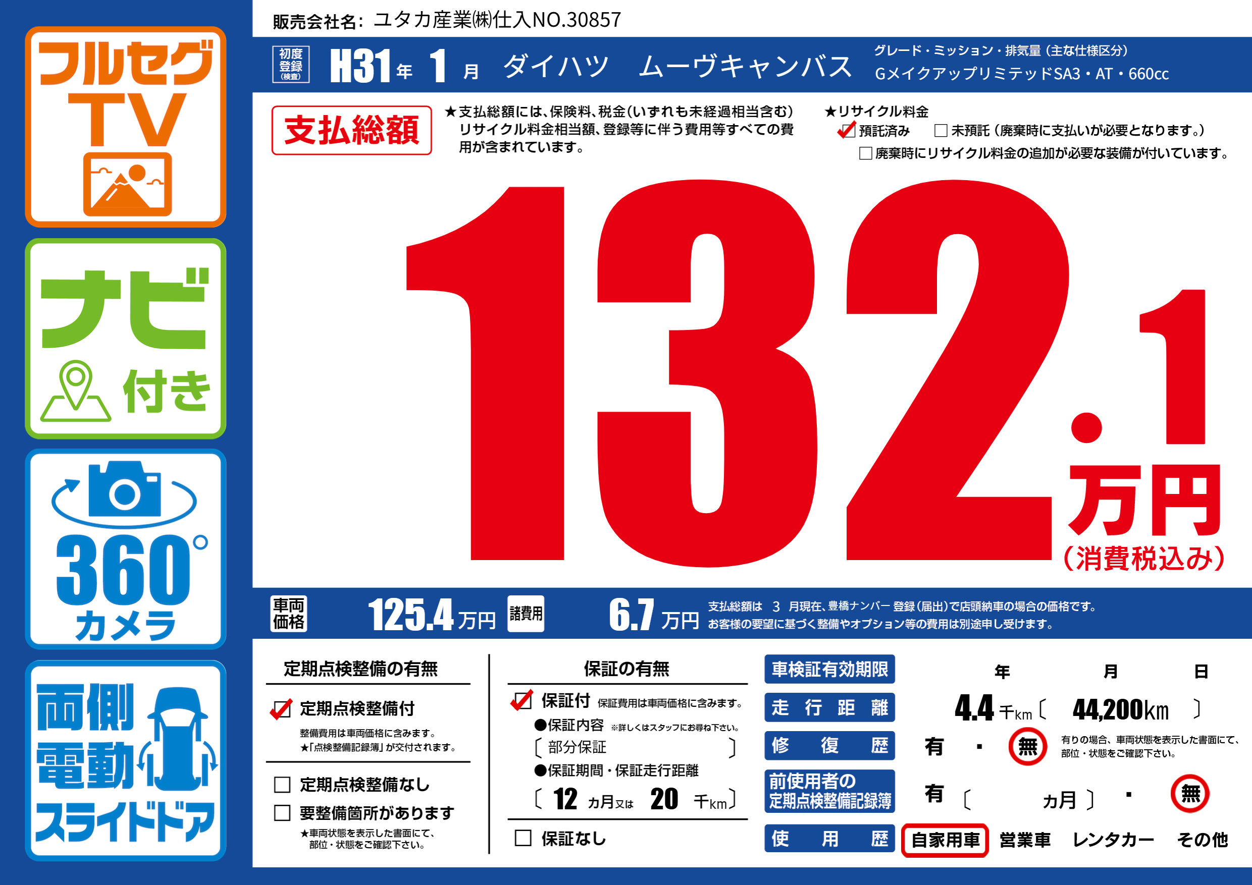 | 初年度登録 | H31年1月 | ||