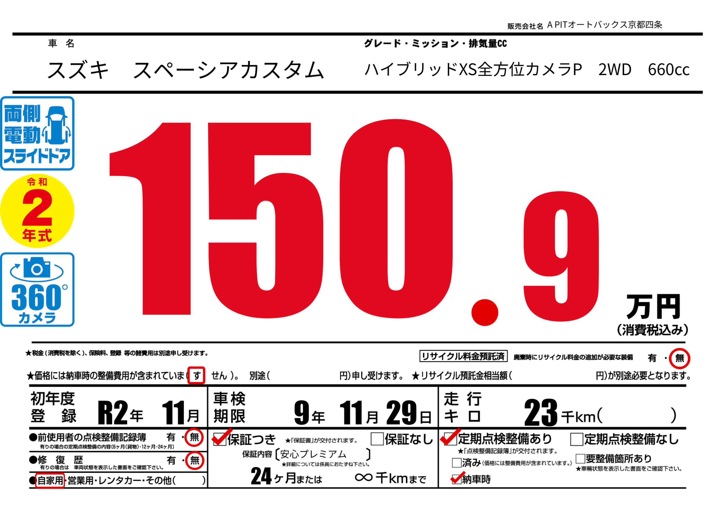 あり | 車検制限 | 9年11月29月 |