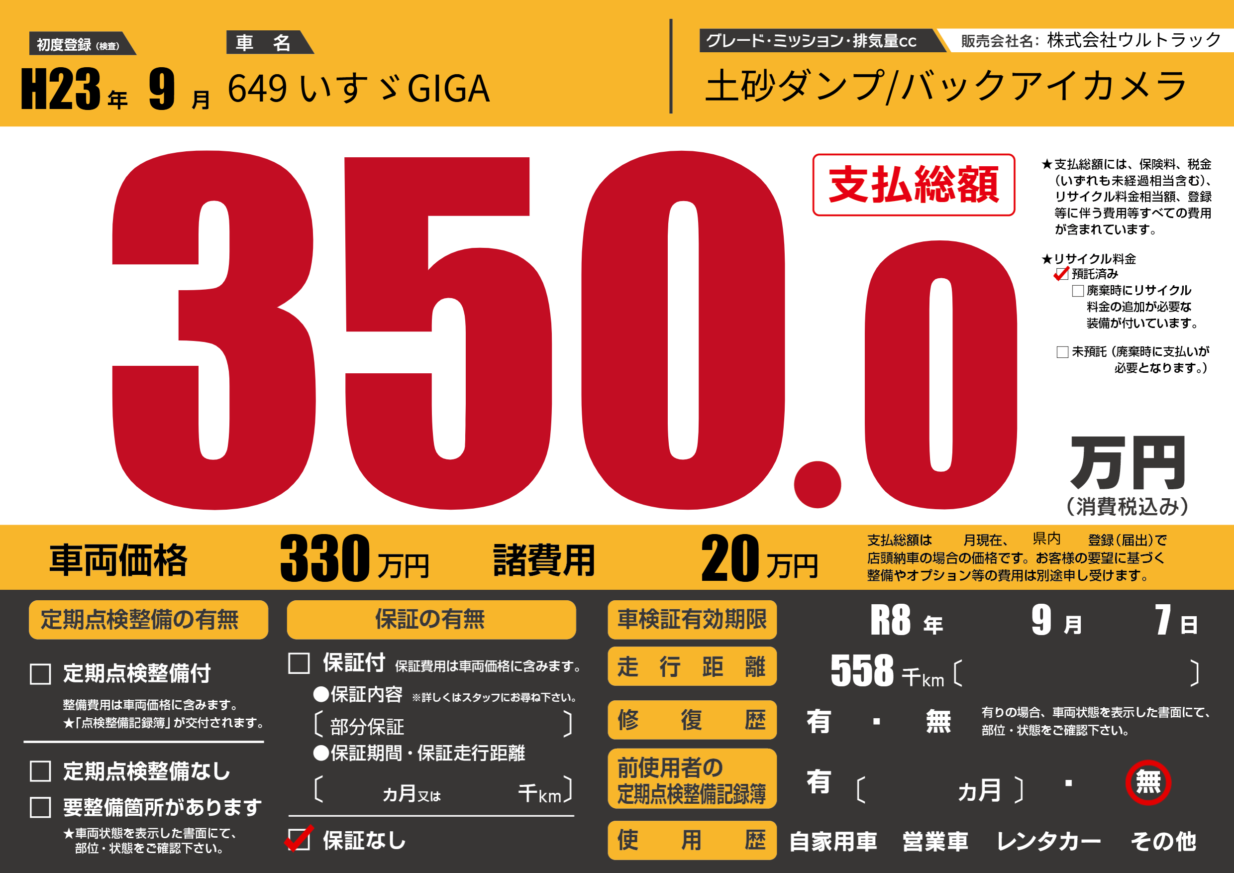 | 車名 | 649 いすゞGIGA | グレード ミッション 排気量 |