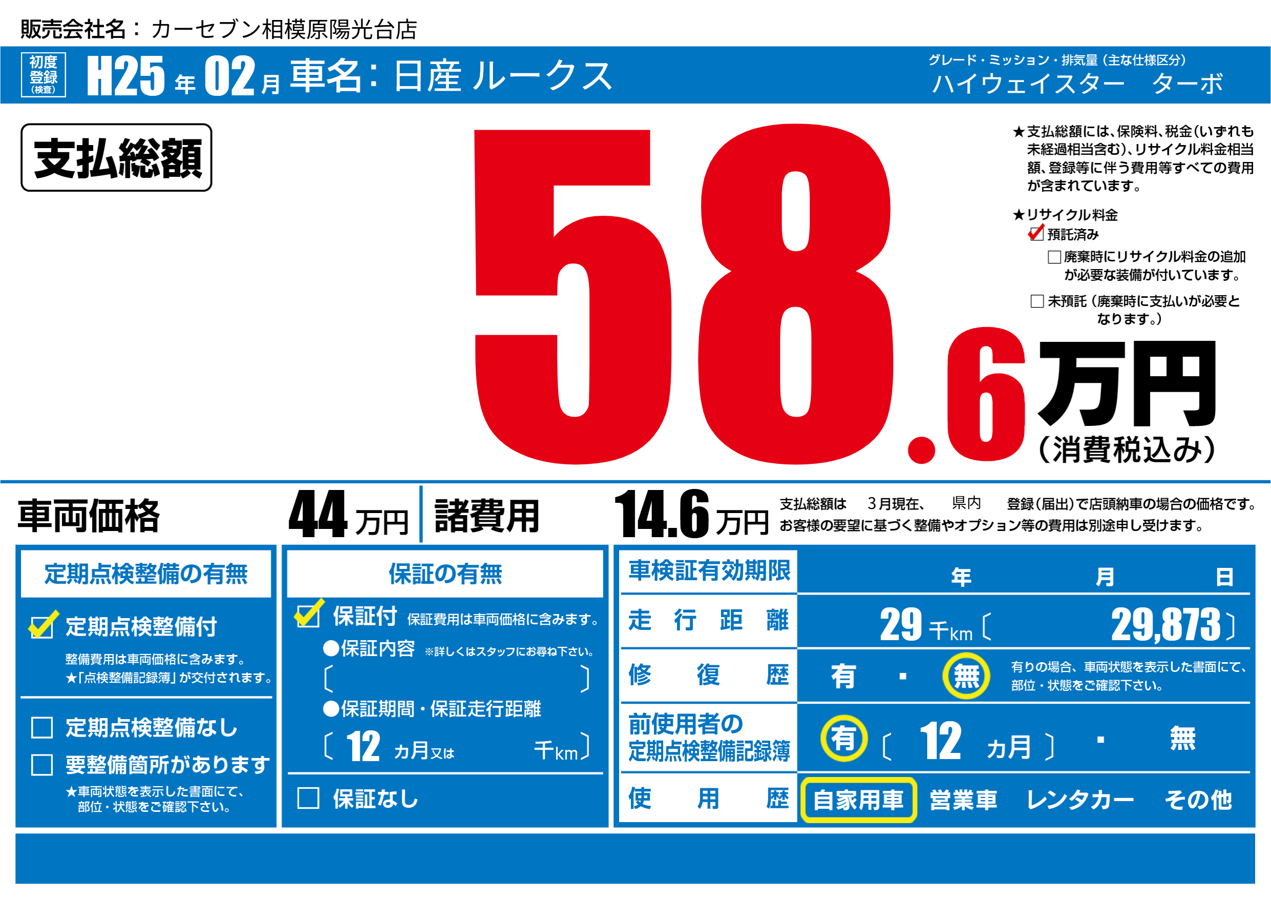 | 定期点検整備 | 定期点検整備あり | ||