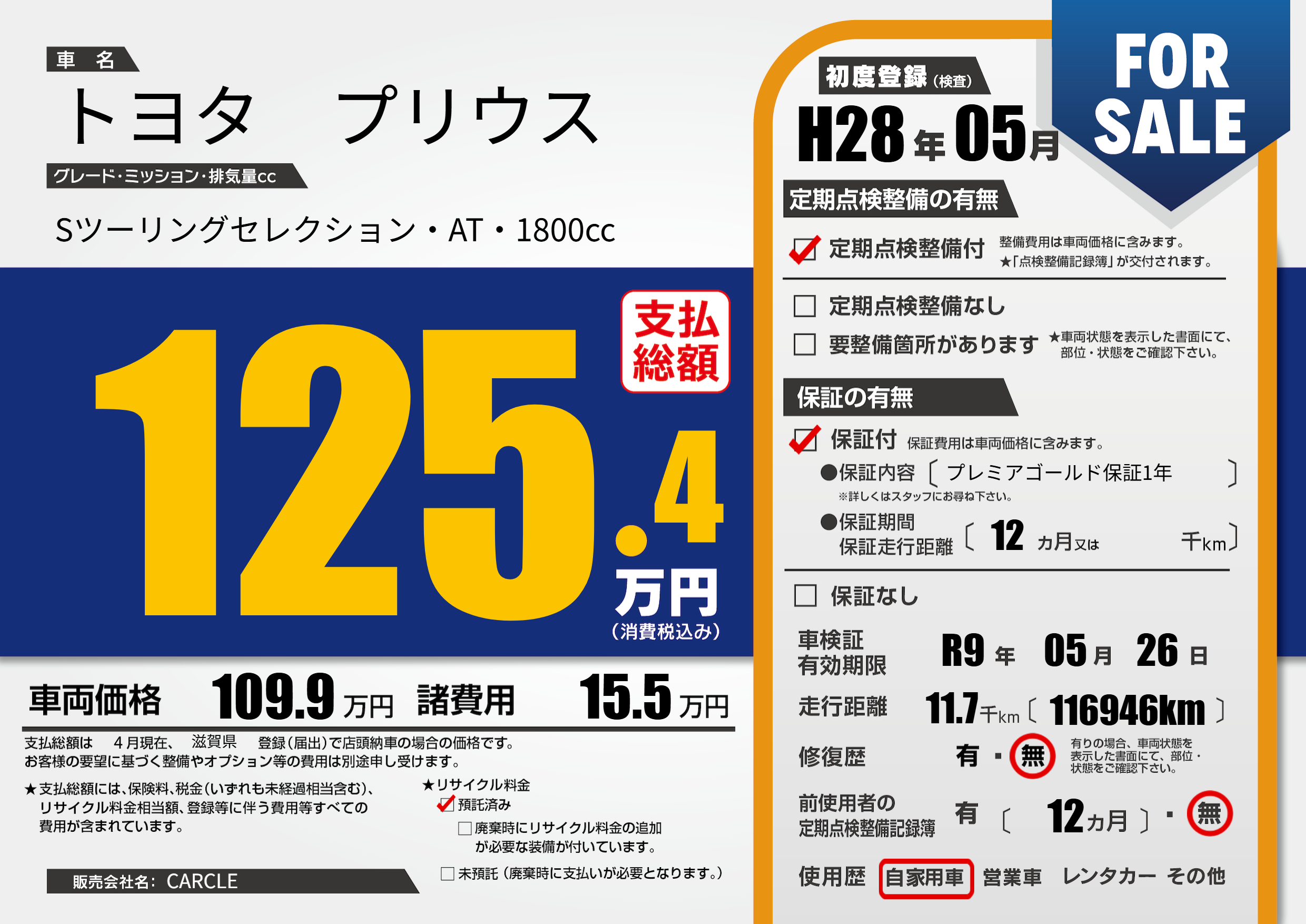 なし | 車検制限 | R9年05月26月 |