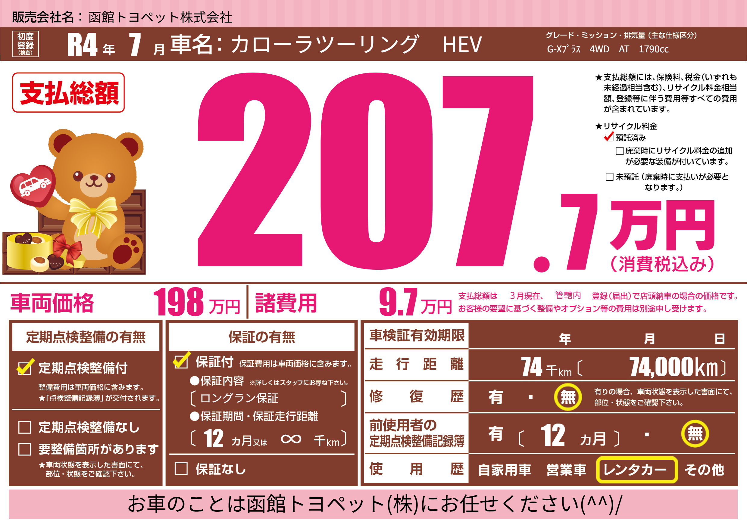 | 定期点検整備 | 定期点検整備あり | ||
