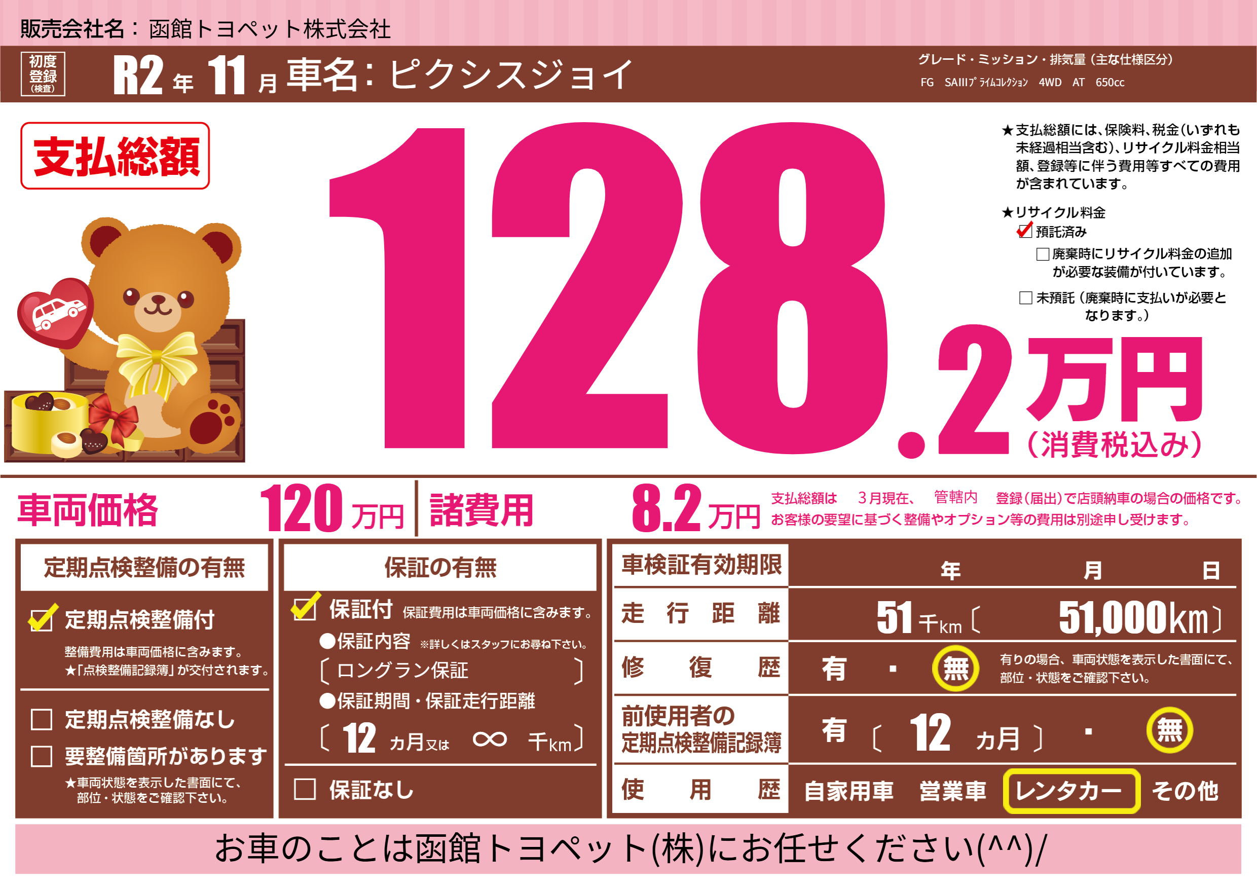 | 走行キロ | 5.1万km | 初年度登録 | R2年11月 |