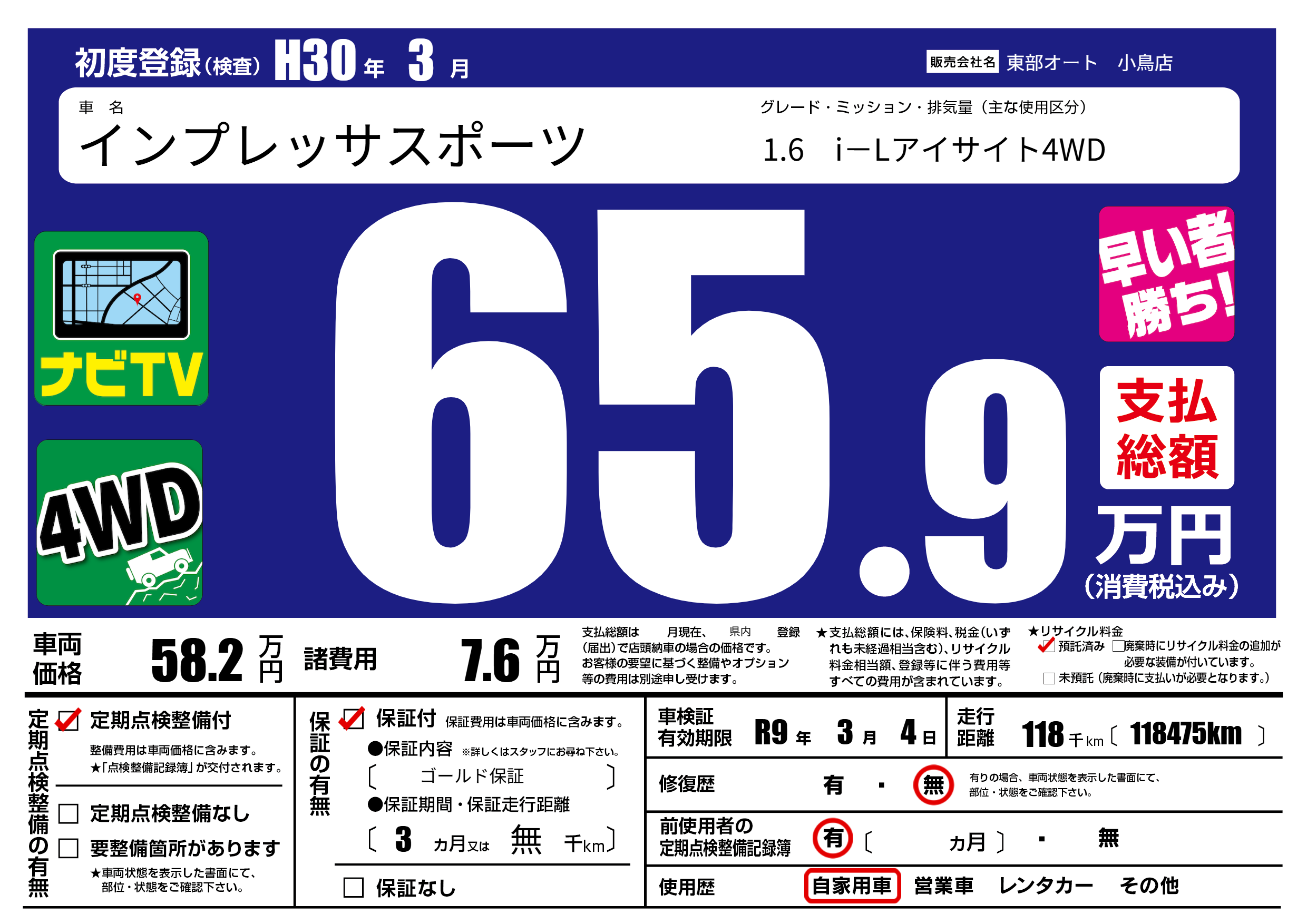なし | 車検制限 | R9年3月4月 |