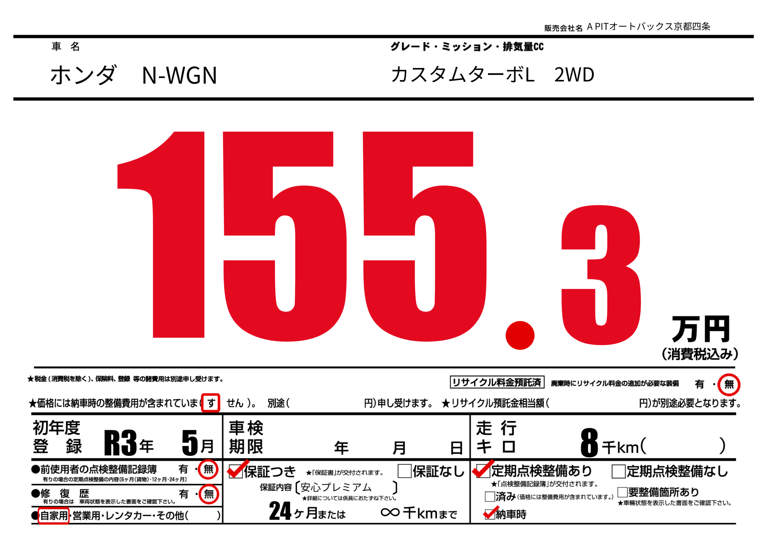 保証なし 保証内容(安心プレミアム) 24ヶ月または(∞)千kmまで |