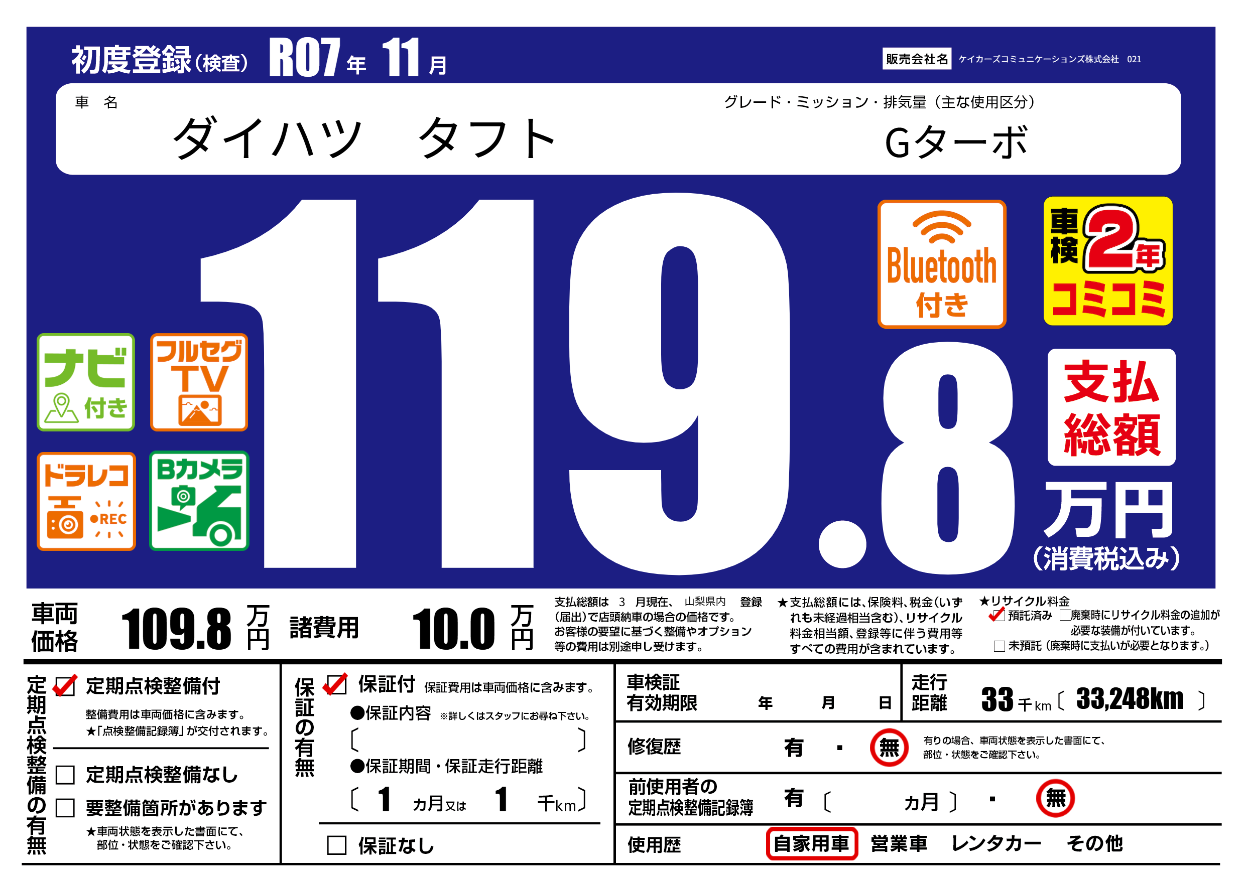 | 定期点検整備 | 定期点検整備あり | ||
