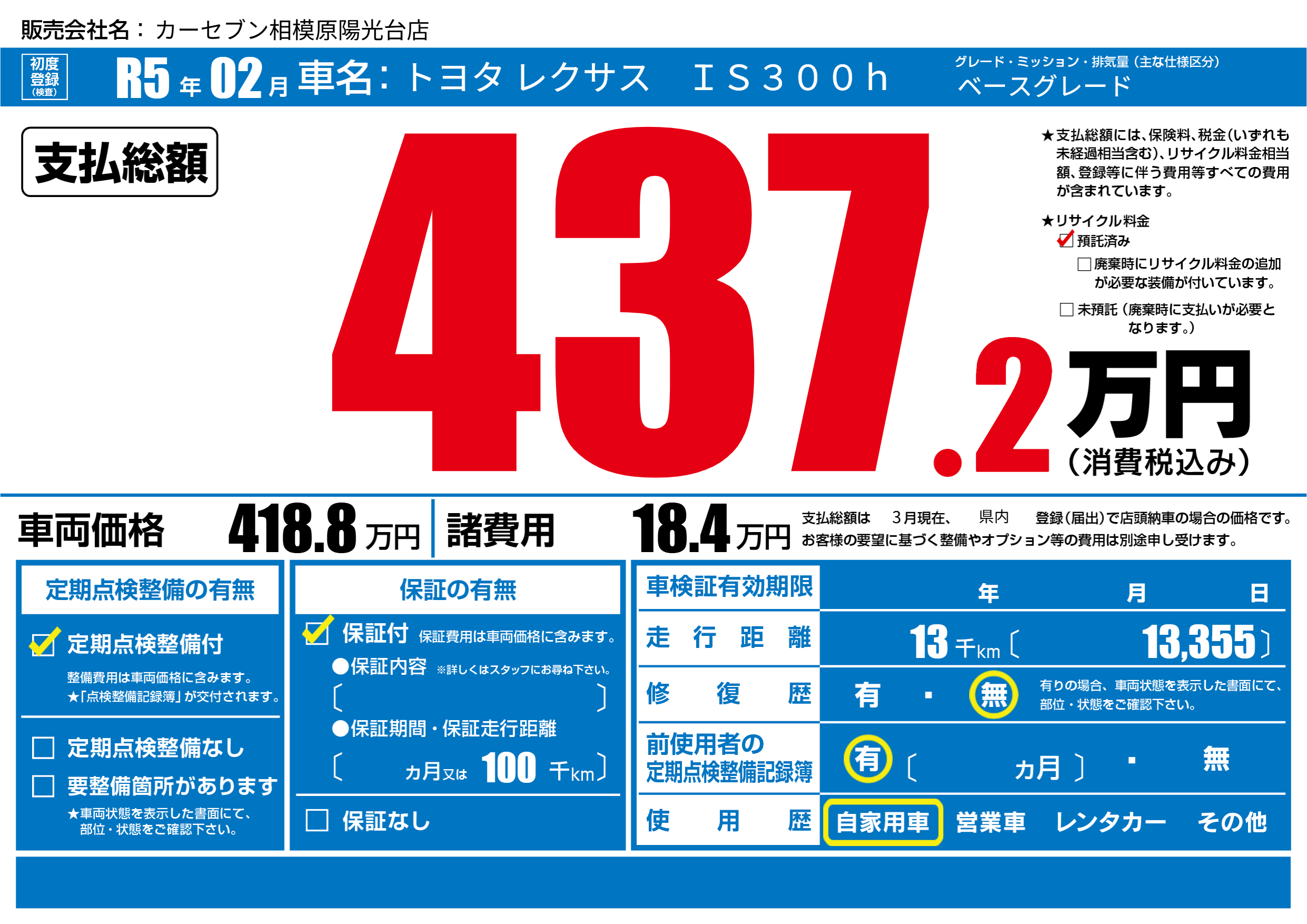 | 定期点検整備 | 定期点検整備あり | ||