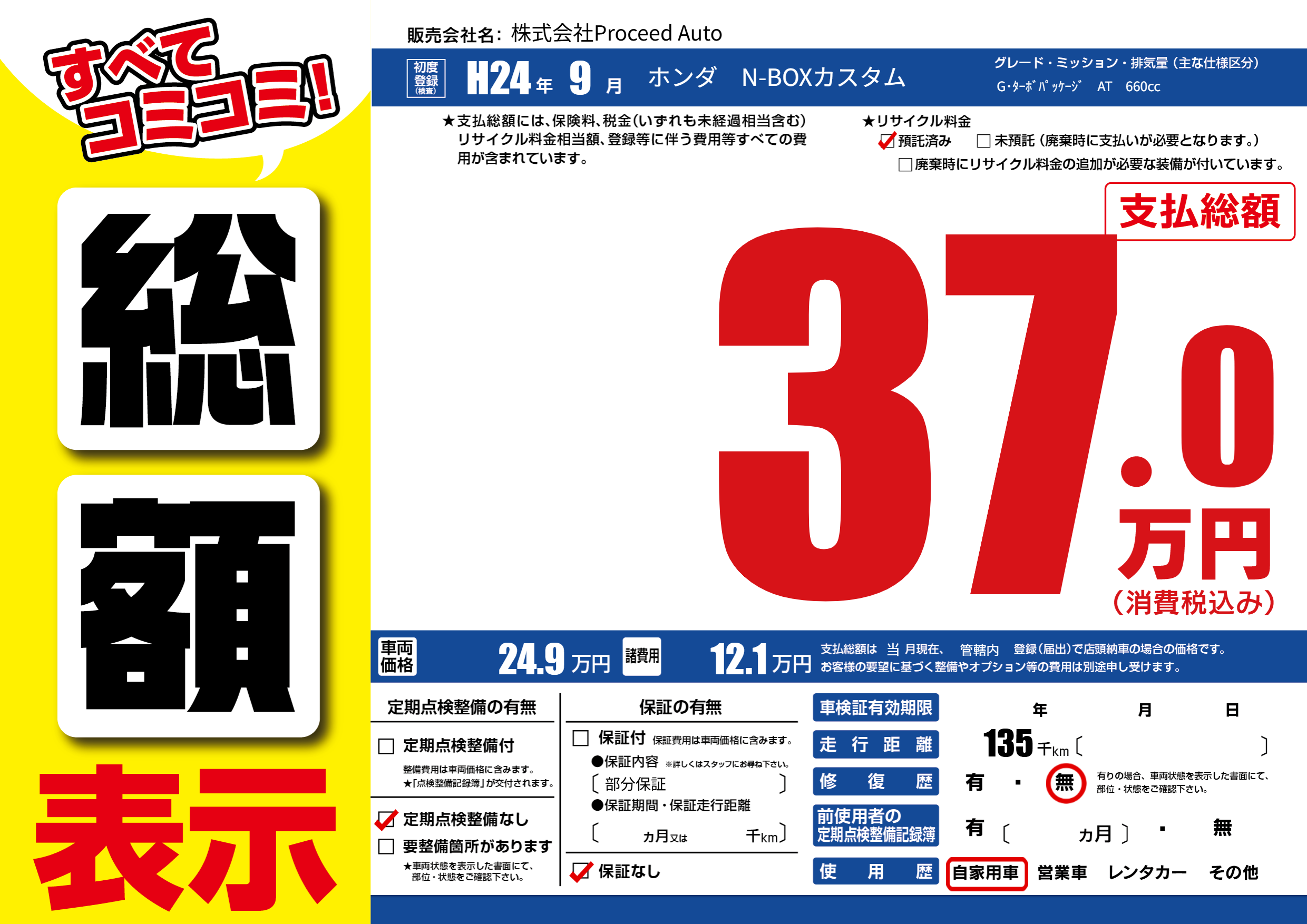 | 走行キロ | 13.5万km | 初年度登録 | H24年9月 |
