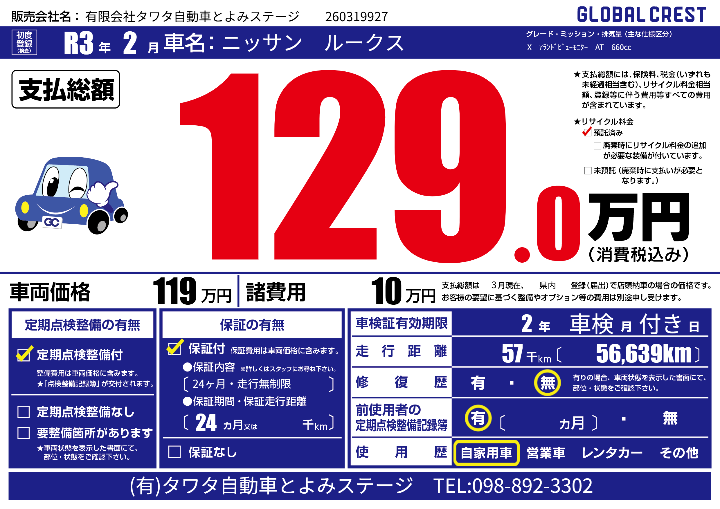 | 走行キロ | 5.7万km | 初年度登録 | R3年2月 |