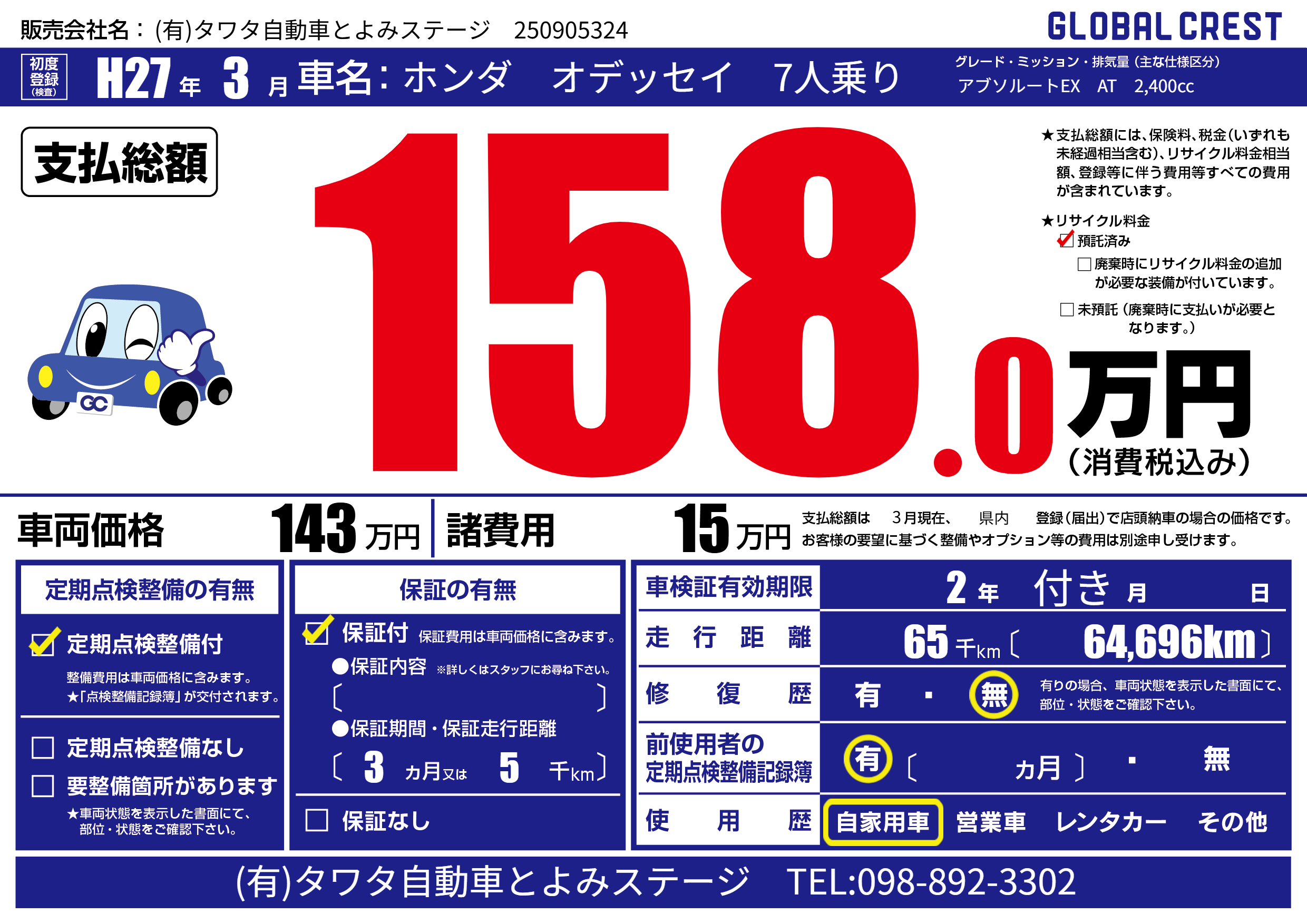 | 走行キロ | 6.5万km | ||