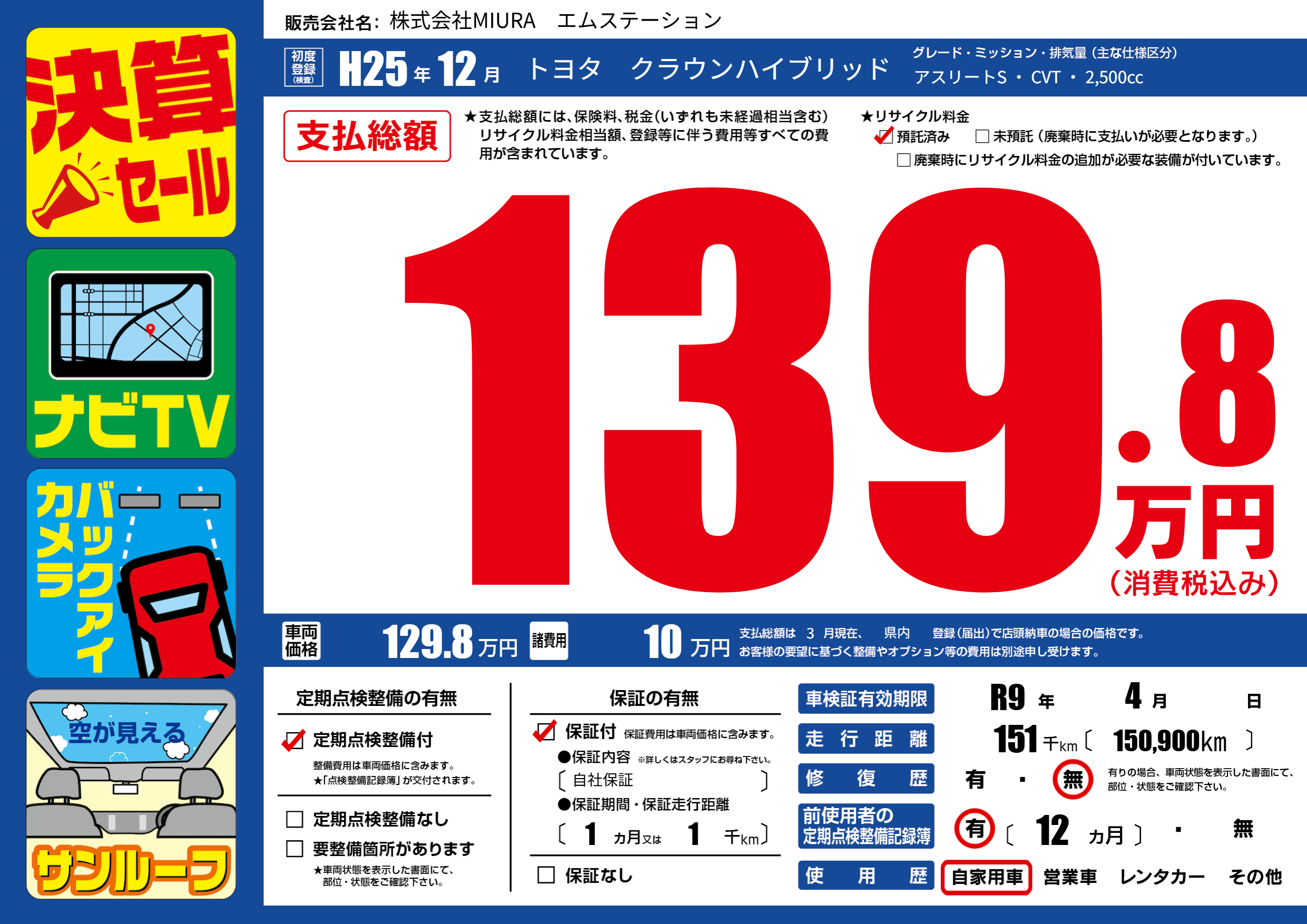 なし | 車検制限 | R9年4月---月 |